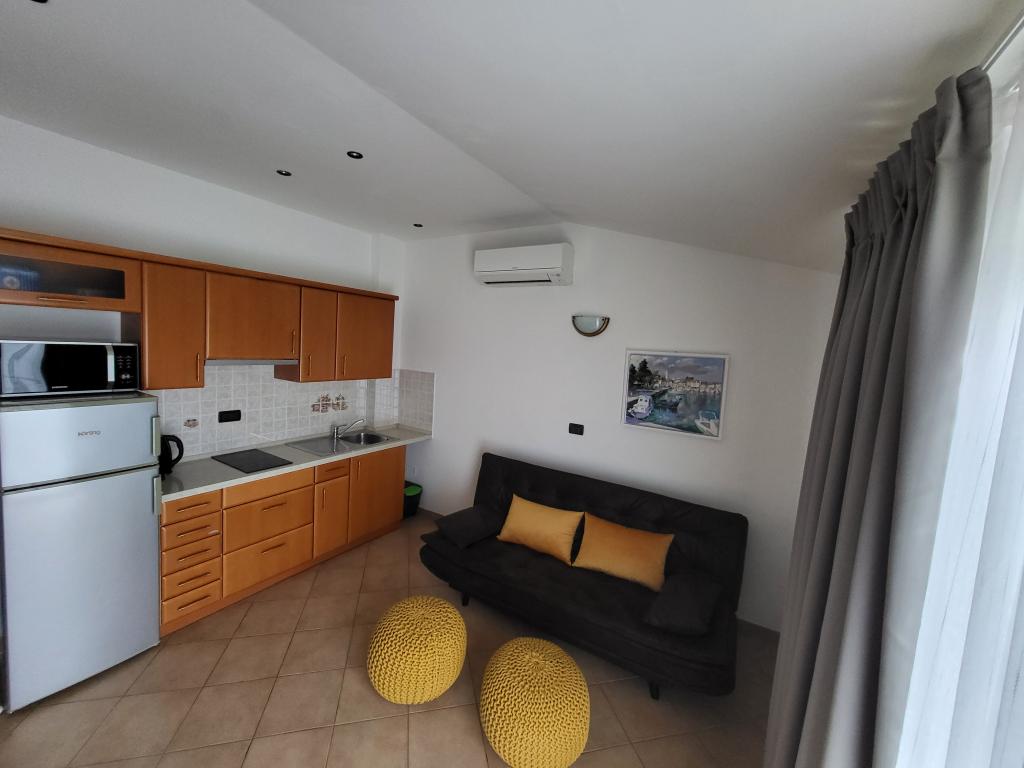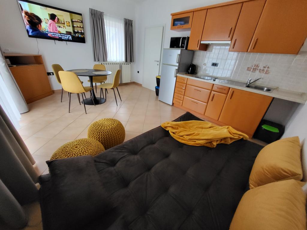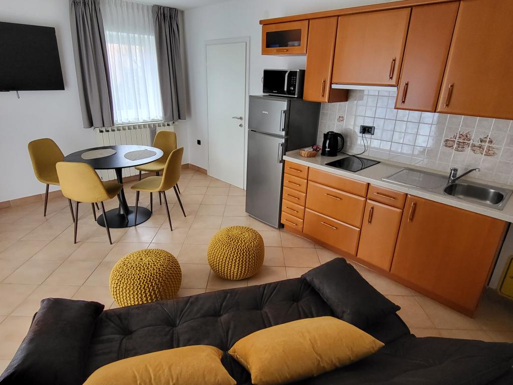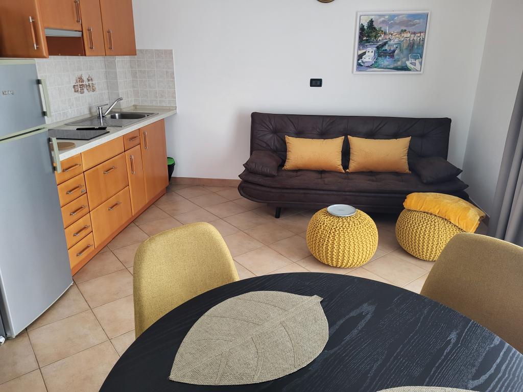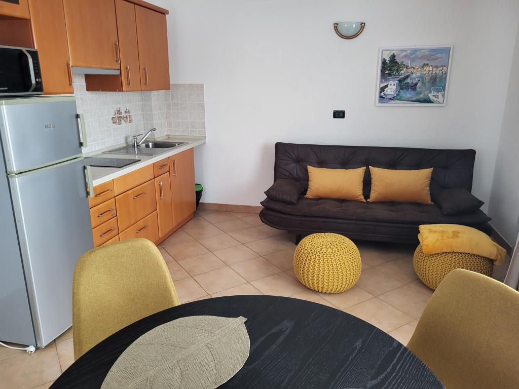 Pour assurer un plus grand confort, nous louons des appartements exclusivement pour un maximum de deux personnes. La maison avec deux appartements est située dans un quartier calme de Novigrad. L'accès à la colonie est très simple, la distance par rapport à la route principale est juste suffisante pour ne pas ressentir l'impact du trafic. Les rues de la colonie sont utilisées uniquement par les habitants et les invités, il n'y a presque pas de circulation. Il y a suffisamment de places de parking devant la maison. Deux appartements dans la maison assurent un niveau de repos élevé et beaucoup de paix et de relations cordiales. Ils sont accompagnés tout au long de l'année. Chaque appartement dispose de 40m² et d'une entrée indépendante. L'appartement du rez-de-chaussée dispose de sa propre terrasse et l'appartement à l'étage dispose d'un balcon. L'appartement est prévu pour deux personnes. Il dispose d'une chambre séparée avec un lit double. La cuisine est entièrement équipée. Les appartements sont climatisés. Les appartements disposent du chauffage central, ils conviennent donc aux amateurs de vélo tout au long de l'année. Les animaux ne sont pas admis.