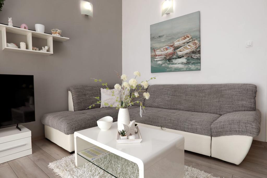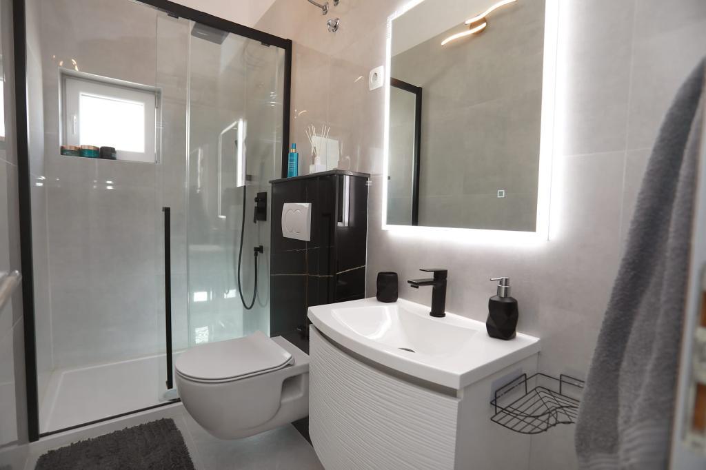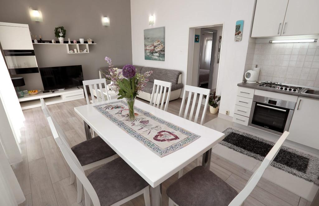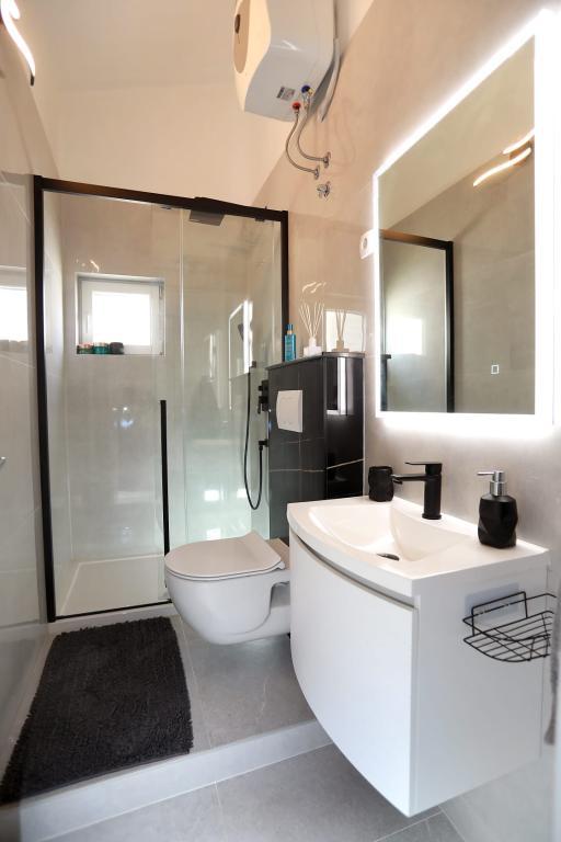 L'appartement Katija est situé à Okrug Gornji, à seulement 30 mètres du bord de mer. Notre appartement offre une combinaison parfaite de calme, de confort et d'une vue enchanteresse sur de nombreuses îles dalmates. C'est une destination idéale pour les familles, les couples et tous ceux qui recherchent la détente dans un environnement naturel, loin de la foule, mais à proximité de toutes les commodités nécessaires. Profitez de votre café du matin ou du coucher de soleil du soir sur votre terrasse privée, où une vue à couper le souffle vous attend. À seulement 5 minutes à pied se trouve une plage bien entretenue adaptée aux enfants, avec des eaux peu profondes et de l'ombre naturelle - idéale pour des vacances en famille. Caractéristiques principales de l'appartement : proximité de la mer, terrasse avec une belle vue, cuisine entièrement équipée avec coin repas et salon, deux chambres avec lits doubles, salle de bain avec douche et équipements de base, Wi-Fi gratuit, climatisation, TV, parking gratuit. Que vous planifiez des vacances actives ou que vous souhaitiez simplement profiter du soleil et de la mer, notre appartement dans le quartier de Gornji offre tout ce dont vous avez besoin pour un séjour inoubliable.