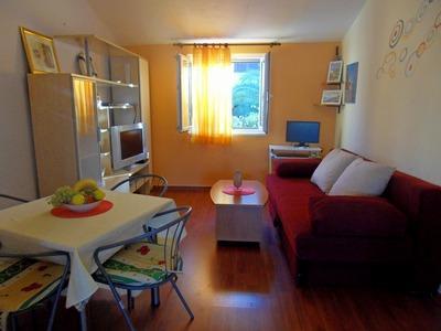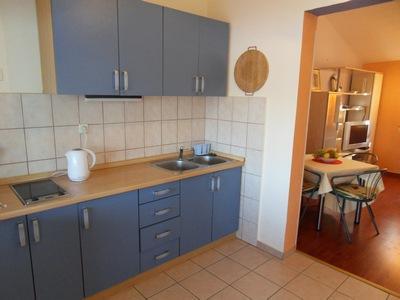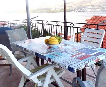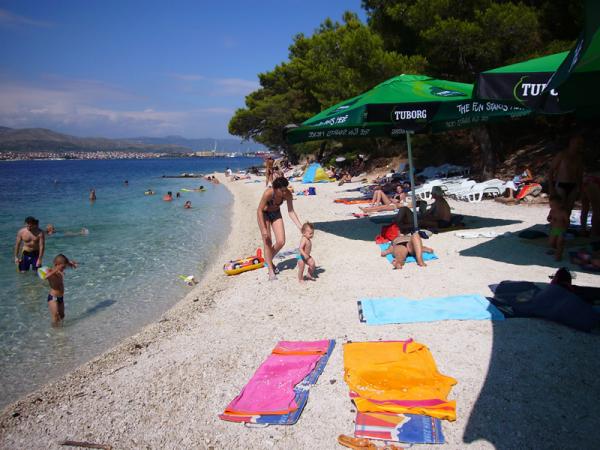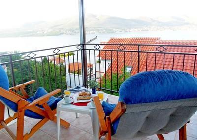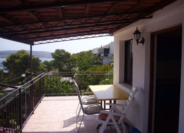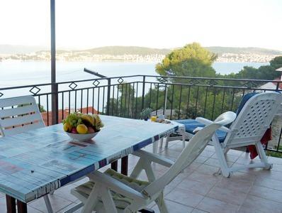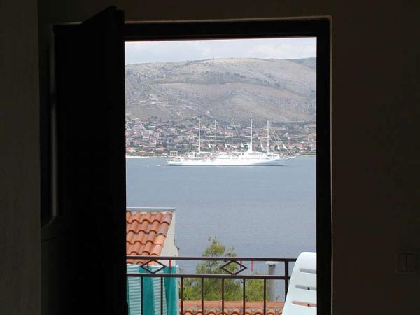 Appartement entièrement équipé à Okrug Donji sur l'île de Ciovo près de la ville de Trogir. L'appartement est situé au premier étage et a une belle vue sur la mer. L'appartement est idéal pour les familles, dispose d'une chambre avec lit double, une petite chambre avec un lit double pour deux personnes, salle de séjour avec lit gigogne, cuisine, salle de bains - avec douche et une grande terrasse semi-couverte avec vue sur la mer. L'appartement est situé en dessous de la route principale (pas besoin de traverser la route pour se rendre à la mer), la mer est à seulement près de 80 mètres de l'appartement. Remarque - accès à la plage en dessous des appartements est assez raide. Grande plage est à seulement 15 minutes à pied de l'appartement.