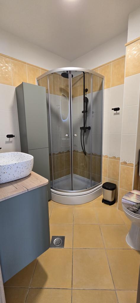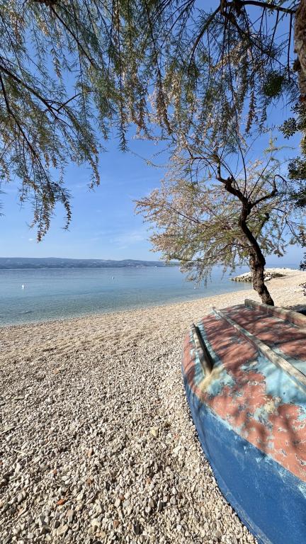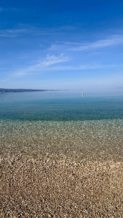 Réveillez-vous avec une vue imprenable sur la mer, pour des vacances parfaites près d'Omiš. Échappez à la foule et profitez du calme. À seulement 100 m de la plage et de la mer. Appartement duplex moderne 2+2 idéal pour une famille. À l'étage, une magnifique vue sur la mer ; au rez-de-chaussée, une grande terrasse avec chaises longues, table et barbecue – votre petit havre de paix. Tout est à portée de main : restaurant à 20 m, supermarché à 50 m, centre d'Omiš à 2 km, promenade le long de la mer. Endroit paisible et calme, parking privé sécurisé. Nous proposons également des excursions et des sorties en bateau privées.