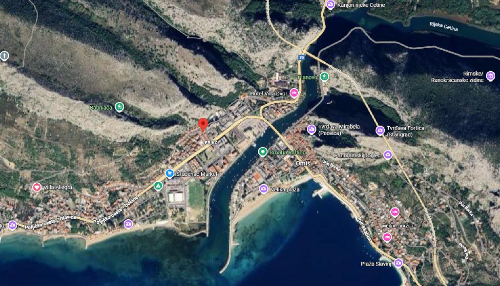 L'appartement « Piccolo » se situe à 5-10 minutes à pied de la vieille ville d'Omiš et à environ 5-7 minutes à pied de la plage de sable (Velika plaža). D'une superficie de 25 m², il se compose d'un séjour avec coin repas et kitchenette, d'une chambre séparée et d'une salle de bains avec douche et lave-linge. La cuisine, entièrement équipée, comprend un micro-ondes, un réfrigérateur, une plaque de cuisson, une cafetière, une bouilloire et de la vaisselle. L'appartement a été partiellement rénové en 2024. Il se trouve dans un immeuble résidentiel et dispose d'une entrée indépendante, accessible par un escalier donnant sur la terrasse exposée sud. Le parking, le Wi-Fi et la climatisation sont inclus dans le prix. Couchage : 1 lit double et 1 canapé-lit. Capacité d'accueil : 2 personnes.