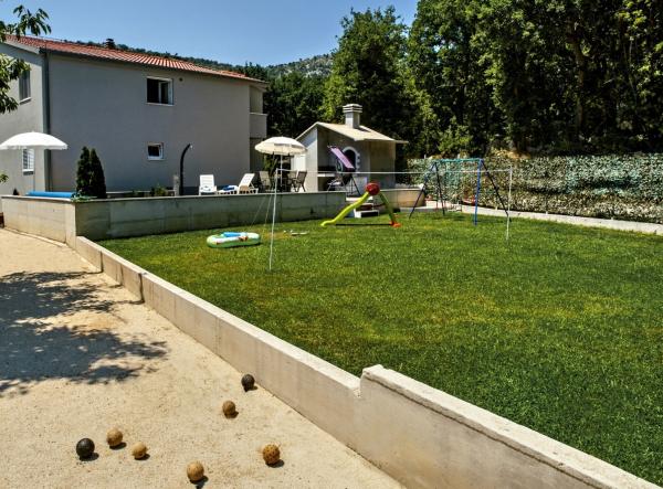 Taxe de sejour est inclus dans le prix.Nos clients ont une piscine privée, une salle avec l'équipement d'exercice, en plein air, barbecue traditionnel, aire de jeux pour le bowling et la pelouse avec balançoire. Draps et serviettes sont également inclus. Ceci est un excellent choix pour les familles, les aventuriers et les groupes d'amis parce que l'emplacement est dans un environnement calme et est bien équipé et offre beaucoup d'espace, et est près de la ville d'Omis (5km), rivière Cetiina où vous pouvez essayer le rafting, tyrolienne, canyoning, libre l'escalade ou tout simplement profiter du magnifique environnement qui offre un canyon de la rivière. La ville de Split avec sa vieille partie, Palais de l'UNESCO Dioclétien que vous voyez est à seulement 21 km, ou une demi-heure, ce qui peut toujours trouver quelque chose pour tou
