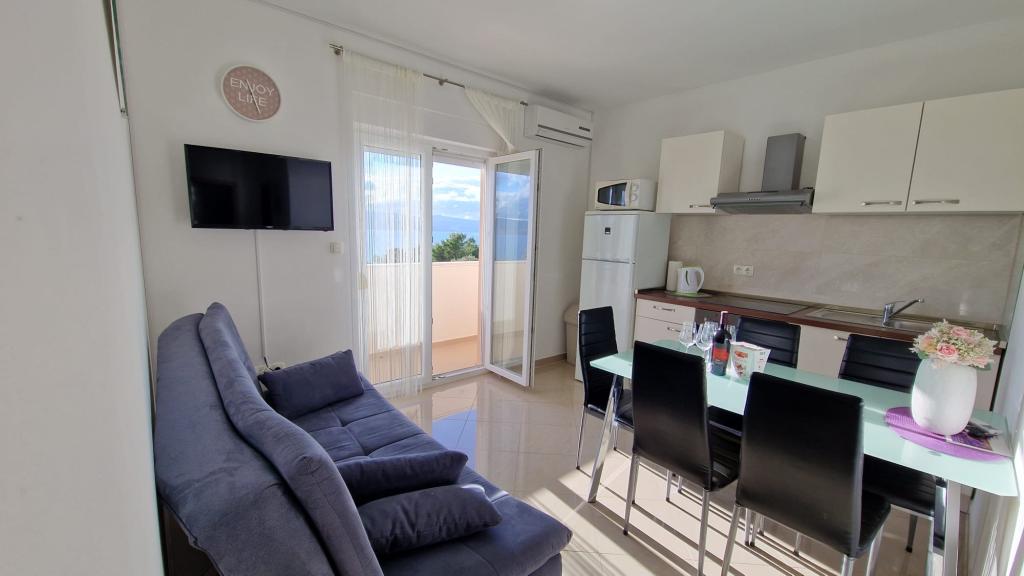 Les appartements MARTA sont situés dans un bel endroit Stanici à 4 km d'Omis. Les appartements disponibles sont situés au rez-de-chaussée et au 1er étage d'une maison familiale. Le propriétaire de l'établissement est à votre service pendant votre séjour. Les appartements offrent une vue sur la mer et l'île voisine de Brac. Les appartements sont un endroit idéal pour les familles avec enfants. Un parking est prévu dans la cour. Tous les appartements sont climatisés. Nous n'acceptons pas les animaux dans les appartements. Pour ceux qui veulent des vacances actives à 4 km d'Omis, diverses activités sont proposées rafting, tyrolienne, alpinisme, excursions en bateau vers les îles voisines de Hvar, Brac. Plus de 100 marches mènent du bâtiment à la plage.