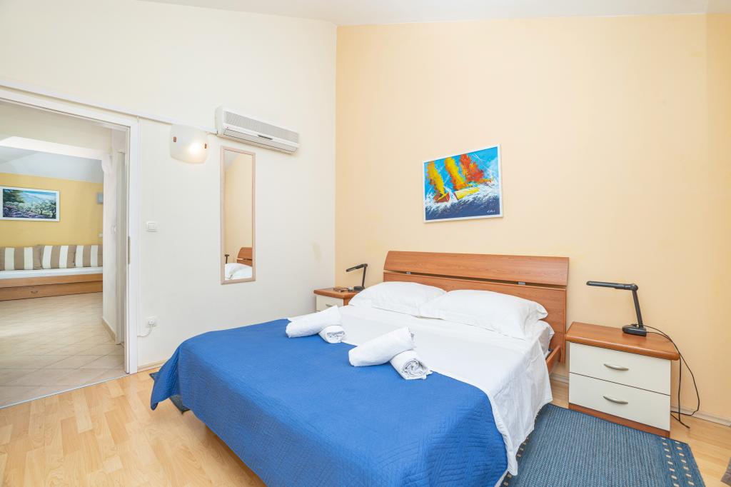 Taxe de sejour est inclus dans le prix.À votre arrivée, nous vous offrons un verre de bienvenue. Nous proposons également la location d'un bateau ou d'un hors-bord, l'organisation de rafting sur la Cetina, des excursions vers l'île de Brač, etc. Tous les appartements disposent d'un barbecue extérieur. Un parking est disponible juste à côté de la villa. De belles plages de galets se trouvent à 30 mètres de la villa. La piscine est réservée exclusivement au grand appartement de luxe de type A 14+2 (villa - maison indépendante). Les autres appartements ne peuvent pas utiliser la piscine. La piscine est donc réservée exclusivement au grand appartement de luxe (villa), les autres appartements ne l'étant pas. La villa avec piscine (grand appartement de type A 14+2) est un bâtiment indépendant. Elle comprend sept chambres doubles, quatre salles de bains avec toilettes, un WC séparé, deux salons, une salle de sport avec sauna, fléchettes, panier de basket, etc. Tous les autres appartements (types A 2+2, Studio+2 et A 4+2) sont situés dans un autre bâtiment indépendant, à 6 mètres de la villa avec piscine.