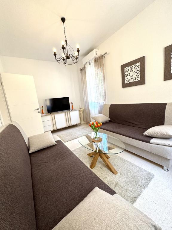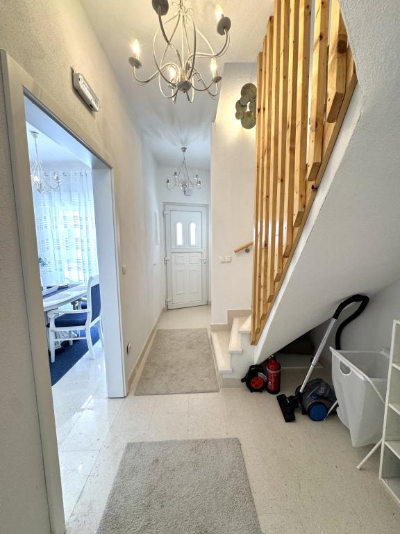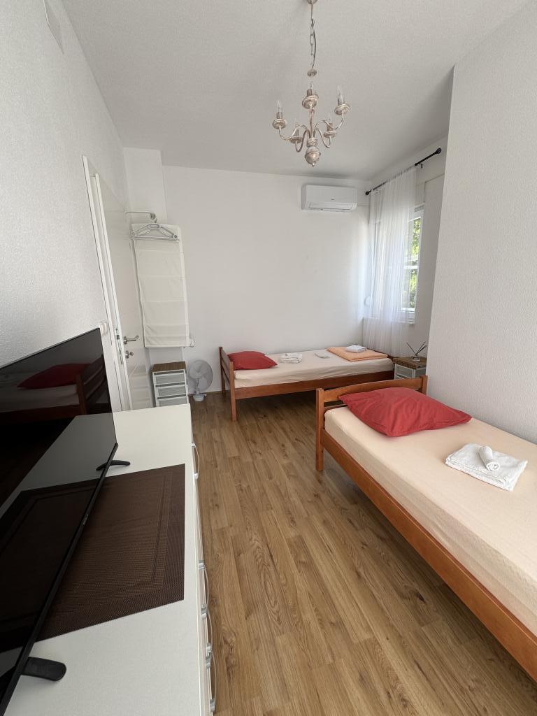 Villa entièrement équipée avec piscine et jardin à proximité de la plage. En tant que seuls occupants, vous bénéficierez de l'accès exclusif à toutes les installations de la villa. Ce logement dispose d'une entrée indépendante. Au rez-de-chaussée, vous trouverez un salon, une cuisine ouverte sur la salle à manger et des toilettes. À l'étage, deux chambres et une salle de bains. La chambre principale est équipée d'un lit sommier à ressorts (200x200 cm). La seconde chambre comprend deux lits simples ainsi qu'un lit d'appoint pour deux personnes maximum et donne accès à la terrasse avec vue sur la mer et Korčula. Le salon est meublé de deux canapés-lits (2x2). L'appartement est équipé de trois climatiseurs, un au rez-de-chaussée et un à l'étage. Le jardin offre un mobilier de jardin, des transats, des parasols, un barbecue, une piscine, un jacuzzi et une aire de jeux pour enfants. De plus, si vous venez en voiture, la villa dispose de plusieurs places de parking privées sur le terrain adjacent, dont elle est également propriétaire. Facebook : Villa Sunshine Orebic