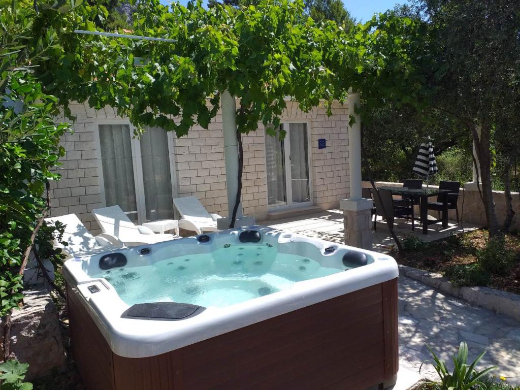 Bienvenue dans un bungalow meublé moderne avec piscine de massage ou appartement familial à Perni sur Peljesac. Le bungalow comprend une chambre, une salle de bain et une combinaison de cuisine et de salon. Le bungalow dispose également d'une grande terrasse privée avec une piscine de massage et une vue sur la mer donnant sur l'île de Korcula. Le bungalow est entièrement équipé avec tout ce dont vous avez besoin pour des vacances idéales (lave-vaisselle, lave-linge, cafetière, internet gratuit). Immédiatement au bout de la rue, vous vous retrouverez sur la plage, à côté du restaurant, où vous pourrez déguster des spécialités de fruits de mer. La plage est située à 50m du bungalow et à 20m des appartements. Obitelski apartman est situé juste à côté de la plage - 20m surplombant la colline de Sv. Élie. L'appartement dispose de deux chambres à coucher, d'une salle de bain et d'une mini-cuisine, d'une connexion Internet gratuite, d'un parking et d'une grande terrasse. Il est situé au 1er étage. C'est idyllique pour une famille de trois enfants.