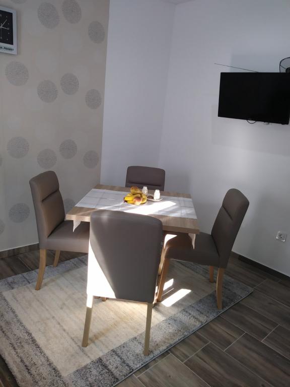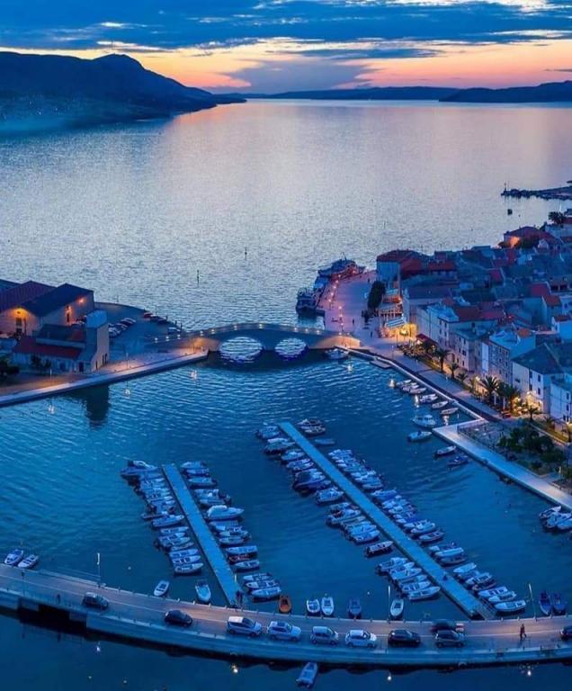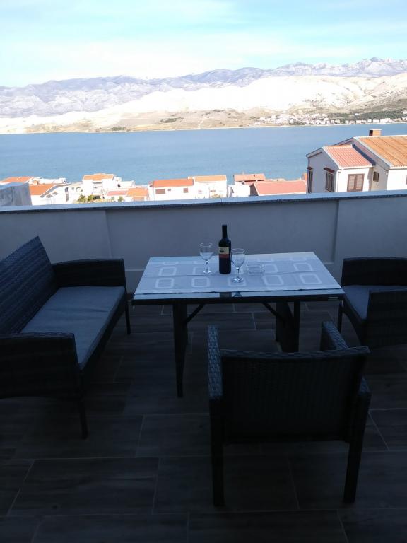 Appartement entièrement meublé de façon moderne dans un quartier calme de la ville de Pag. Belle vue depuis la grande terrasse sur la mer et le Velebit. La cuisine est aussi moderne que tout l'appartement. Le prix comprend la climatisation, wifi, parking, machine à laver, barbecue dans la cour et taxe de séjour. La plage est à 250m et le centre ville à 1500m.