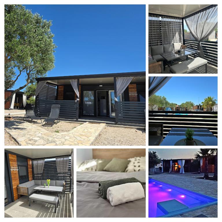Mobil-home Maslina – Votre havre de paix en bord de mer. Bienvenue au Mobil-home Maslina, un mobil-home à la décoration moderne situé dans un quartier calme de Pirovac, à seulement 200 m de la plage. Pouvant accueillir jusqu'à 5 personnes, il dispose de deux chambres avec un total de 4 lits, d'un salon avec canapé-lit, d'une cuisine équipée et d'une salle de bain. Profitez de la grande terrasse couverte donnant sur la piscine, idéale pour un café matinal ou une détente en soirée. Un parking est également disponible. Le Mobil-home Maslina est idéal pour des vacances en famille, au calme, en pleine nature et à proximité de la mer. Découvrez l'hospitalité dalmate et réservez vos vacances dès aujourd'hui !