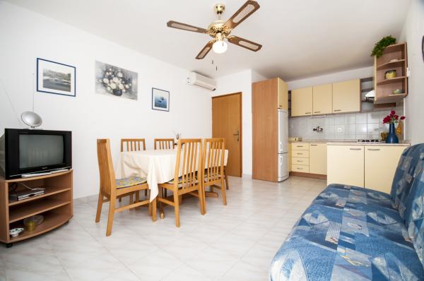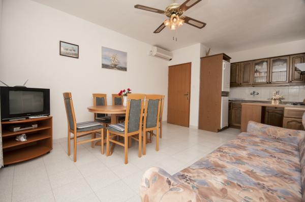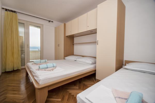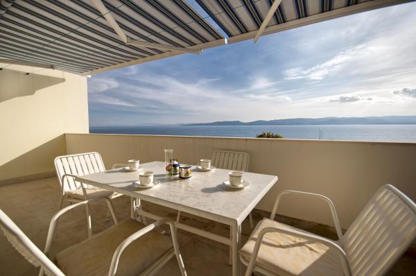 Appartements modernes, situé une petite plage de galets, à 50 mètres de la mer avec de grands balcons donnant sur la mer, orientée au sud, et ont un écran solaire de qualité. Du centre-ville, des restaurants, des cafés et une grande plage est à 5 minutes à pied. Tous les appartements sont climatisés, cette année, nous avons également l'air conditionné dans chaque chambre, un total de 10 climatiseurs. Wi-fi Internet dans toutes les suites, micro-ondes, télévision par satellite aussi. Le stationnement est gratuit, il ya suffisamment de places de stationnement pour tous les clients dans toute la maison.