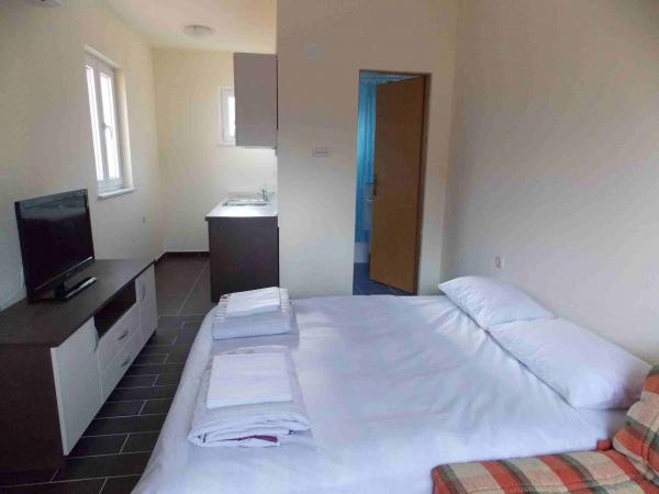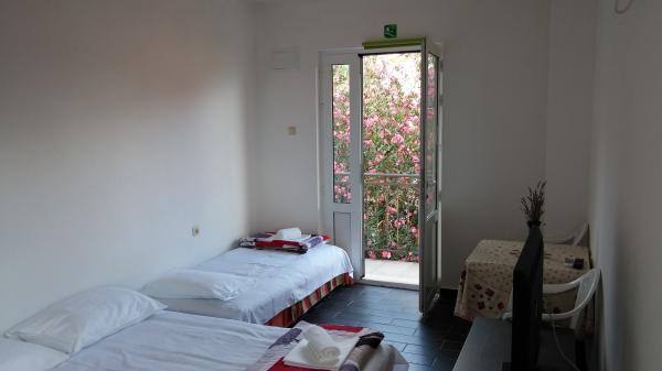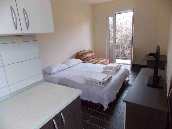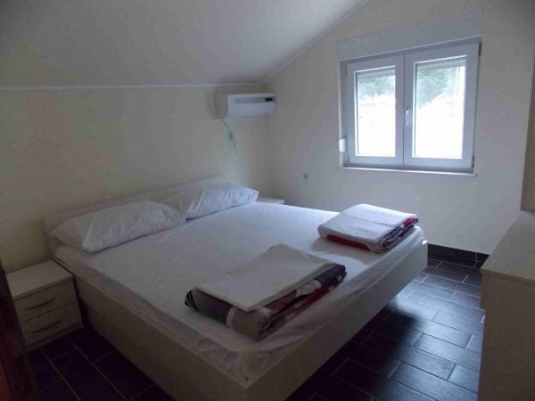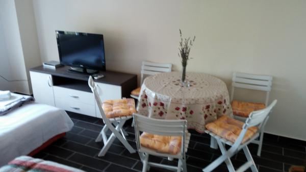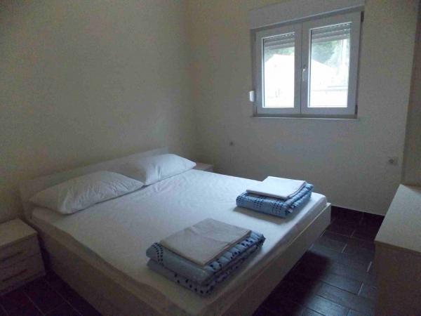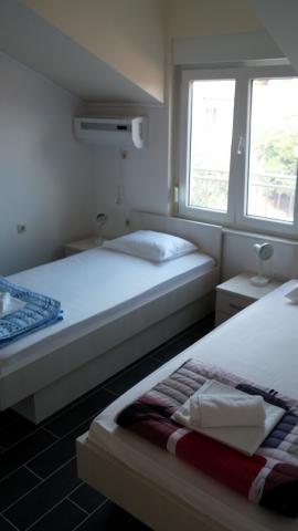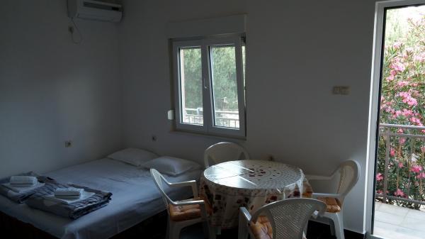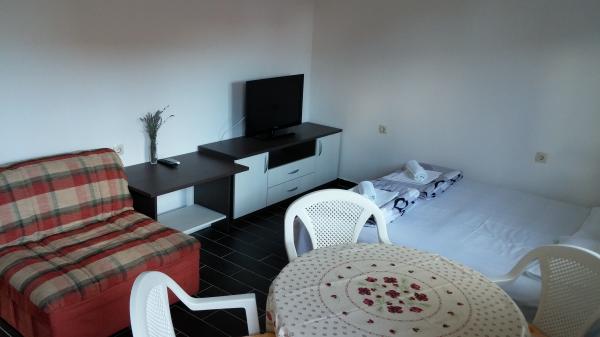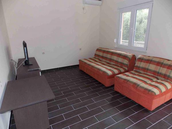 Les appartements sont situés dans le centre de données. Ils sont situés à 100m de la mer et de belles plages. Magasin, bureau de poste, terrain de sport, église, arrêt de bus et d'échange dans un rayon de 40 m de l'appartement. L'installation se compose de quatre suites, deux appartements séparés pour deux personnes avec un lit supplémentaire, un appartement pour deux personnes avec trois lits d'appoint et un grand appartement pour quatre personnes et trois lits d'appoint. Les appartements sont neufs et équipées d'air conditionné, télévision, salle de bains et cuisine. Les appartements ont l'usage de deux terrasses et une cour avec barbecue à l'ombre. place de parking est prévu, et le prix comprend la taxe de séjour. Les draps et les serviettes sont inclus et sont changés tous les sept jours.