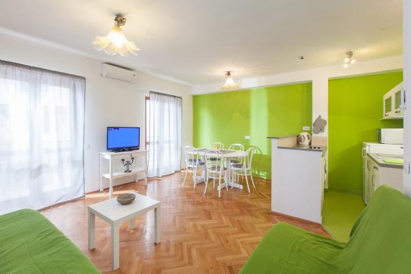 Chers invités, Nous pensons que vous méritez des vacances... Nous aménageons soigneusement nos appartements d'année en année et nettoyons soigneusement à chaque quart de travail. Le bruit des grillons de la pinède voisine vous endormira et passera vos journées sur les belles plages de Podgora, dans la solitude ou dans l'agitation, le tout pour quelques minutes de marche. Bienvenue Katarina et Ivica avec les enfants Tina, Tonči, Jadran et Dante