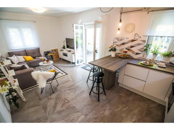 Appartement Garden Residence est situé à seulement 350 mètres de la mer et la belle plage de sable et de galets à Podstrana. Situé dans un environnement Dalmatie calme à proximité de toutes les attractions touristiques en particulier du célèbre palais de Dioclétien, qui est protégé par l'UNESCO, dans le centre de Split. La principale gare routière, la gare et la gare routière sont à seulement 10 minutes de notre appartement. Nous sommes liés la ligne de bus très fréquents avec le centre de Split. Nous sommes également bien relié à l'autoroute Trogir 25 km et Omiš 6 km. L'aéroport de Split est à 25 km. L'appartement est élégamment conçu et équipé de toutes les facilités nécessaires disponibles pour les touristes. Notre avantage est authentique barbecue qui est ouvert tout au long de votre séjour. Un beau jardin avec mobilier de jardin offre une atmosphère agréable, calme et intime plein d'air méditerranéen. Et en particulier, il convient de noter que vous êtes les seuls clients dans notre maison et la propriété privée.
