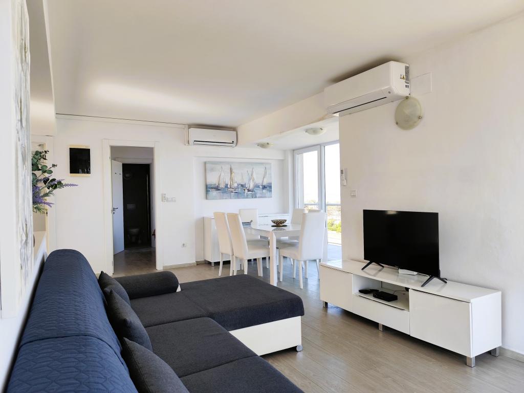 À Povljana, des appartements modernes de deux ou trois chambres avec vue sur la mer et piscine commune sont idéaux pour des vacances en famille. Chaque appartement comprend deux salles de bains, une cuisine entièrement équipée, un salon spacieux et un grand balcon/terrasse offrant une vue imprenable sur la mer et les îles. Vous y trouverez également une connexion Wi-Fi gratuite, la climatisation dans chaque pièce et tout le confort nécessaire pour un séjour comme à la maison. Situés à seulement 130 m de la plage, les appartements donnent accès à une piscine et à un solarium au sein du complexe. Un parking privé est mis à la disposition de chaque client devant son appartement. Grâce à leur emplacement privilégié et à leur calme, ces appartements sont le choix idéal pour se détendre et profiter pleinement du soleil dalmate.