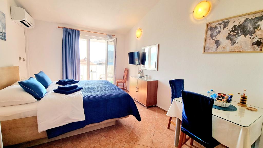 Excellent hébergement avec une vue parfaite sur la vieille ville et la mer. C'est propre, paisible, bien équipé avec un lit confortable et dispose d'un balcon offrant une vue magnifique. La climatisation rend le séjour encore plus agréable. Les hôtes sont gentils et serviables, un parking est disponible et l'emplacement est parfait, proche de la plage et de la vieille ville. Hautement recommandé!