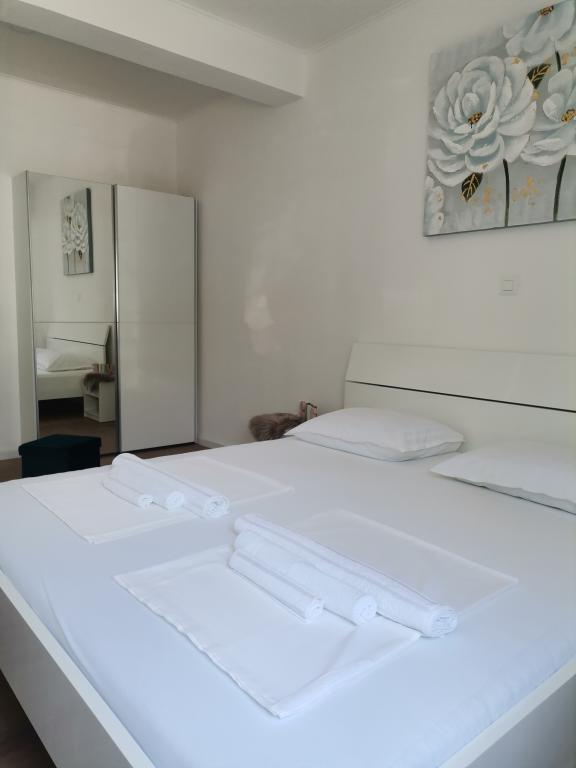 Notre logement est bon pour les couples et les familles avec enfants. Le grand appartement dispose d'une longue terrasse avec une belle vue sur la mer et les îles autour de Primošten. Notre nouvel appartement moderne avec une belle vue sur la mer est entièrement équipé d'appareils électroménagers neufs et vous aurez tout ce dont vous avez besoin pour passer d'agréables vacances. Nous proposons également une chambre idéale pour les couples et pour un court séjour. Le logement est situé dans un quartier très calme, et vous pourrez rejoindre facilement et rapidement le centre-ville (5-7 minutes à pied) ou la célèbre plage principale (3-5 minutes à pied). A côté de la maison, nous avons un parking spacieux où vous pouvez laisser votre voiture.