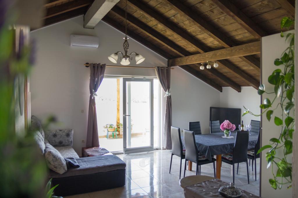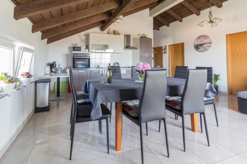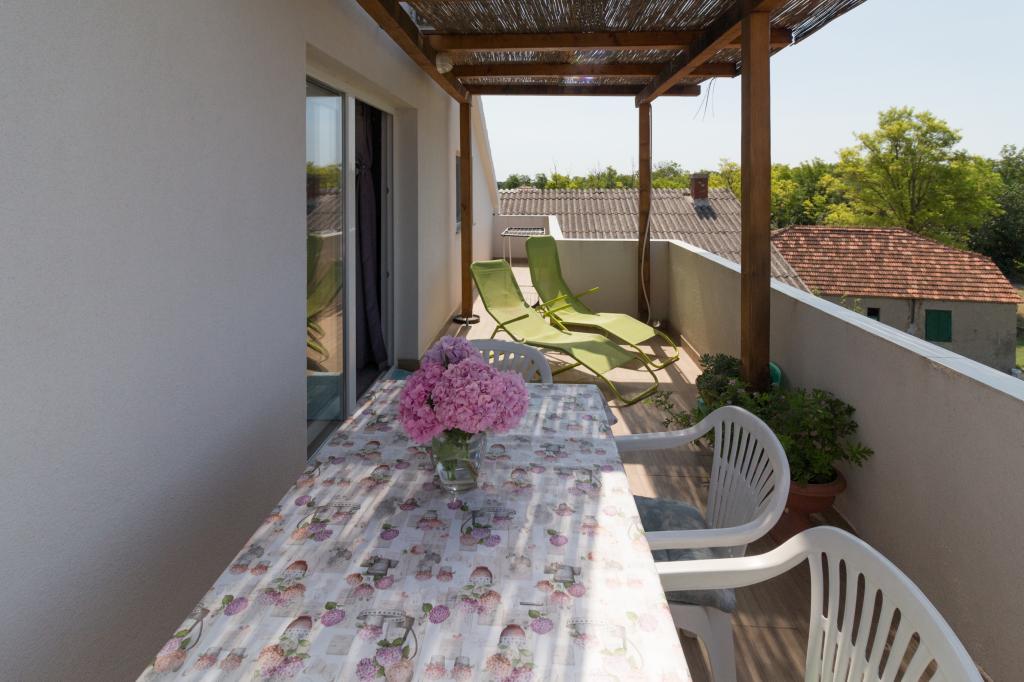 Situé dans la paisible ville de Privlaka, à seulement 600 m de la mer et des plages de sable, l'Appartement Tia allie parfaitement confort, espace et charme méditerranéen. Ce spacieux appartement de 100 m² est idéal pour les familles et les groupes jusqu'à 8 personnes (7+1). Il offre trois chambres confortables, une cuisine entièrement équipée, un salon spacieux et un grand balcon offrant une vue magnifique sur la nature environnante. Les animaux de compagnie sont les bienvenus ! Wi-Fi gratuit, parking privé et tout le nécessaire pour des vacances sans soucis sont à votre disposition. Profitez du silence, de la verdure et de l'air pur, tout en bénéficiant d'un emplacement idéal : à seulement 2 km de la ville historique de Nin et à 25 km de Zadar, ville riche en culture et en gastronomie.