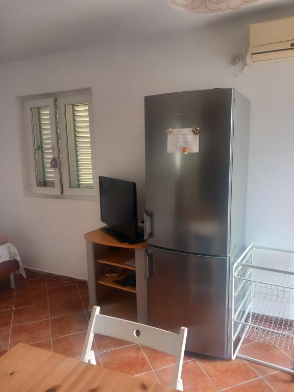 Appartement de 37 m² à Privlaka. Il se compose de deux pièces : une chambre avec un lit double et une pièce à vivre avec salon (et un grand lit) et cuisine/salle à manger. La salle de bain est équipée d'une douche et de toilettes. Le salon dispose de la climatisation et d'une télévision. L'appartement possède une cour avec table et chaises, un grand auvent, une douche extérieure et un barbecue. La plage la plus proche se trouve à 100 mètres. Son entrée de sable est idéale même pour les tout-petits. À proximité, vous trouverez une aire de jeux pour enfants avec équipements et terrain de volley-ball. Le long de la promenade, plusieurs plages aménagées pour les enfants, dont une entièrement de sable, sont accessibles. L'appartement est situé à cinq minutes à pied d'un magasin, d'un bureau de poste, d'une boulangerie et d'une pharmacie. Zadar (à 18 km de Privlaka), Nin (à 5 km) et Zaton (à 6 km) sont à proximité, ainsi que de nombreuses infrastructures pour petits et grands. L'appartement est équipé d'une connexion Wi-Fi. Nous mettons à disposition trois vélos pour adultes.