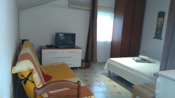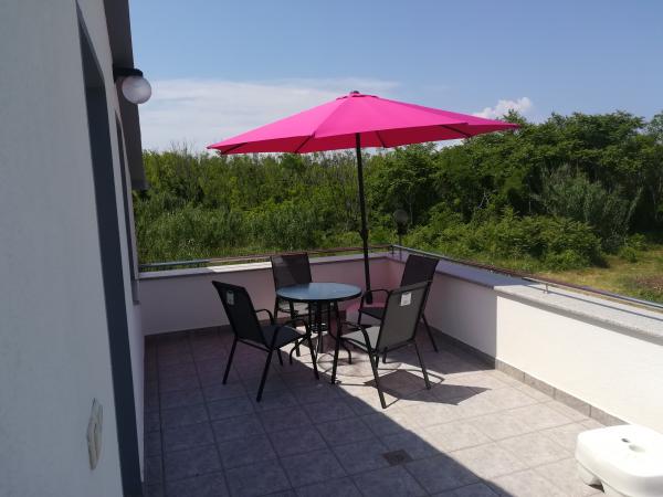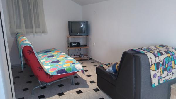 Appartements entièrement équipés avec terrasse, grande cour, avec possibilité d'utiliser une aire de jeux et un bassin pour enfants. . Si vous voulez visiter notre lieu, vous pouvez également prendre nos vélos (gratuits) à la plage, à 10 minutes à pied, à pied, dans une rue calme ou en voiture pendant environ 3 minutes. La gare routière est à environ 200-300 mètres. Les appartements disposent de tout le matériel nécessaire à la préparation des repas, draps, serviettes, moustiquaires aux fenêtres, télévision à écran plat (programme satellite), WIFI gratuit, climatisation, barbecue, parking couvert, lave-linge, douche extérieure. Important: Il existe une possibilité d'extraits à long terme dans des conditions excessives.