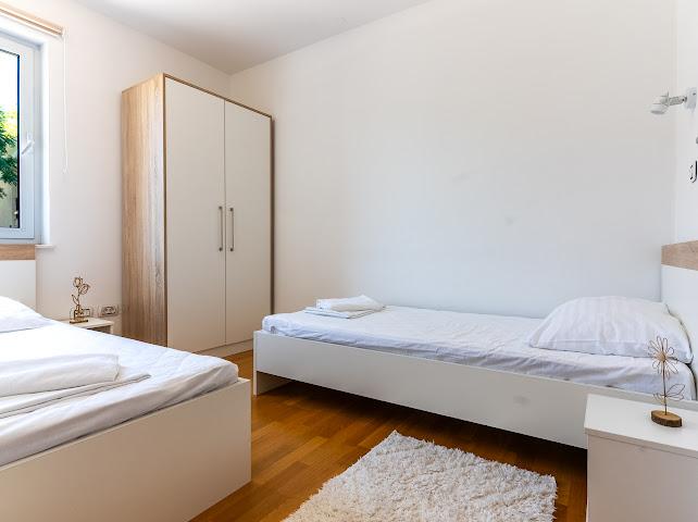 My Nest Accommodation est situé dans un quartier calme de Privlaka (Glavanci), à 600 m de la première plage et à 800 m de la plage de Bilotinjak, l'une des plus belles plages de sable de cette partie de la Dalmatie. Nous proposons un parking privé devant chaque appartement et une cour commune unique avec cuisine équipée, barbecue, terrasse, piscine de 100 m², solarium, jacuzzi et sauna aux senteurs méditerranéennes. Chaque appartement comprend un salon, une cuisine entièrement équipée, deux chambres, une salle de bains et une terrasse ou un balcon. Nous sommes à seulement 12 km de Zadar et à 3 km de la ville historique de Nin. Notre emplacement est idéal pour visiter les îles Kornati, le parc national de Krka, le parc national des lacs de Plitvice, Pag, Ugljan et bien d'autres sites d'intérêt, tout en profitant du calme d'une authentique ville dalmate.
