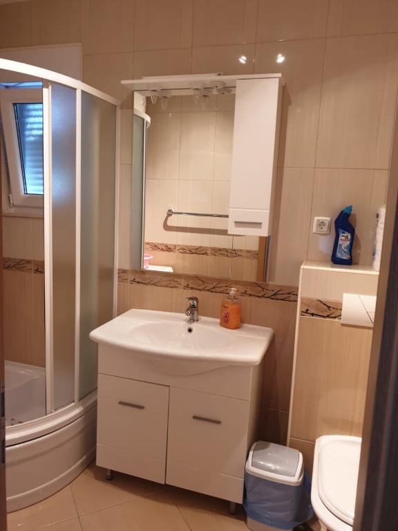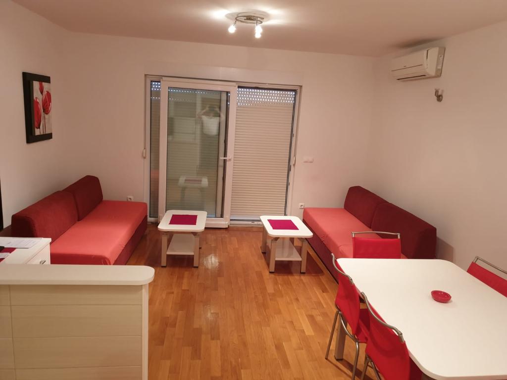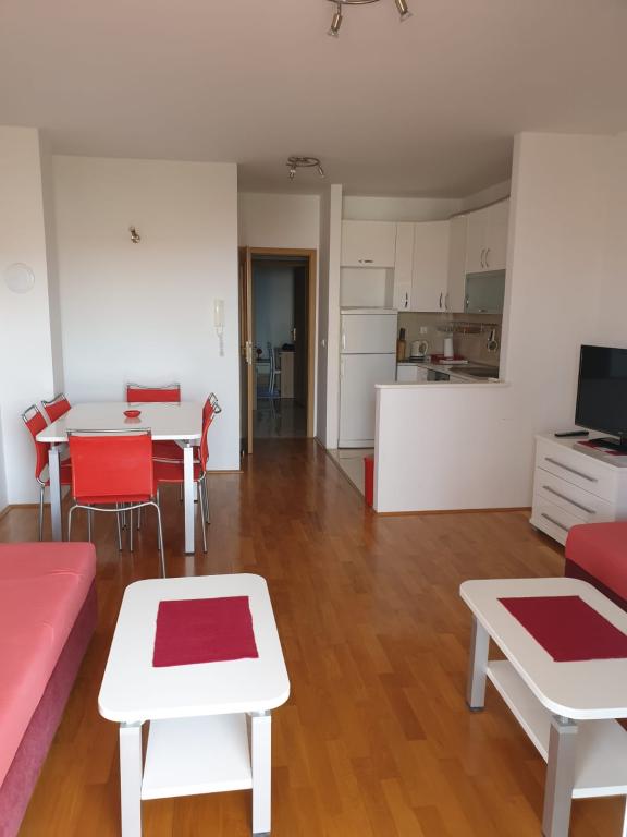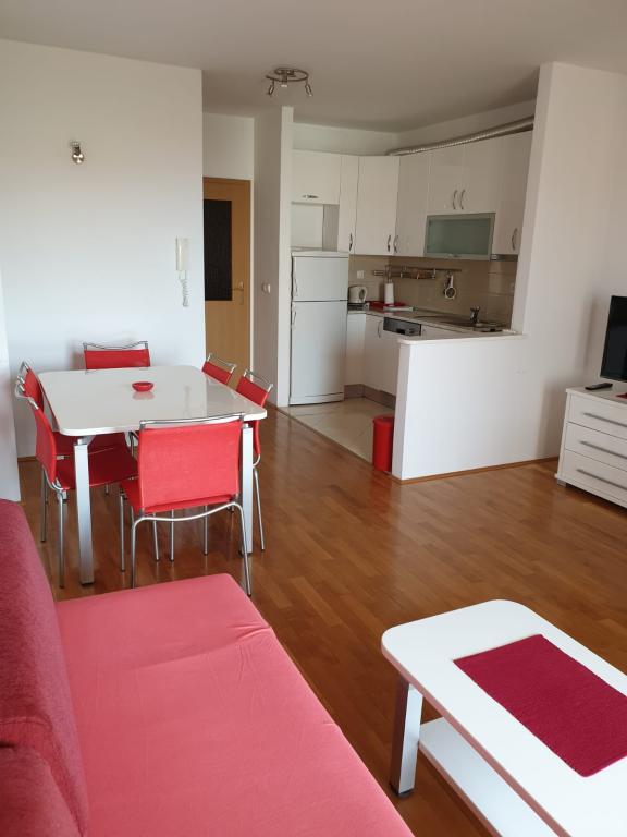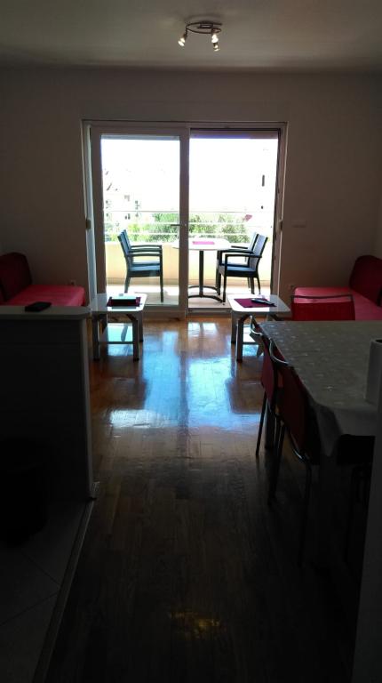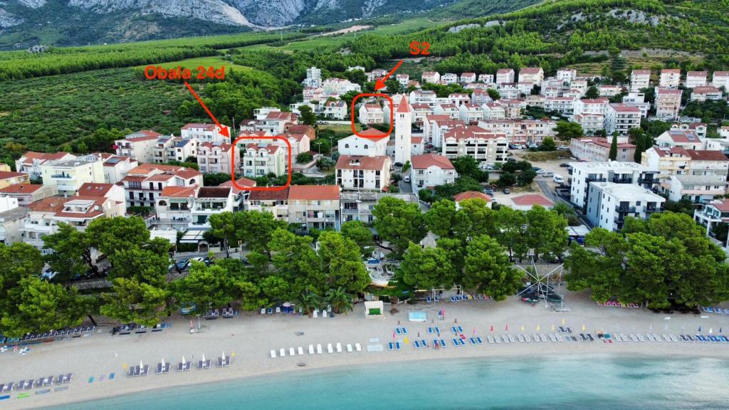 L'appartement S2 (2+2) est situé dans la ville de Promajna, au centre-ville, juste au-dessus (nord) de l'église - à environ 100 m de la plage principale, au Prilaz obali 24. Il y a un parking pour une voiture à côté de l'appartement.