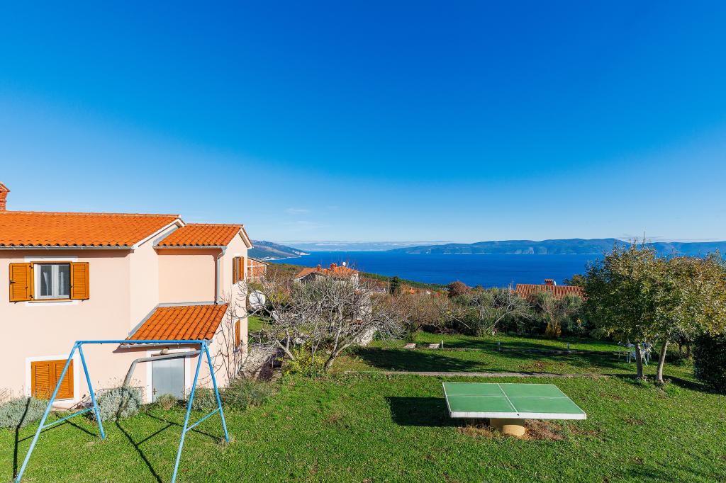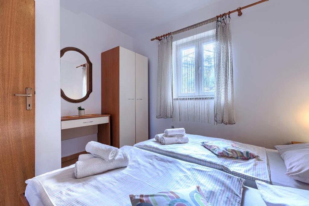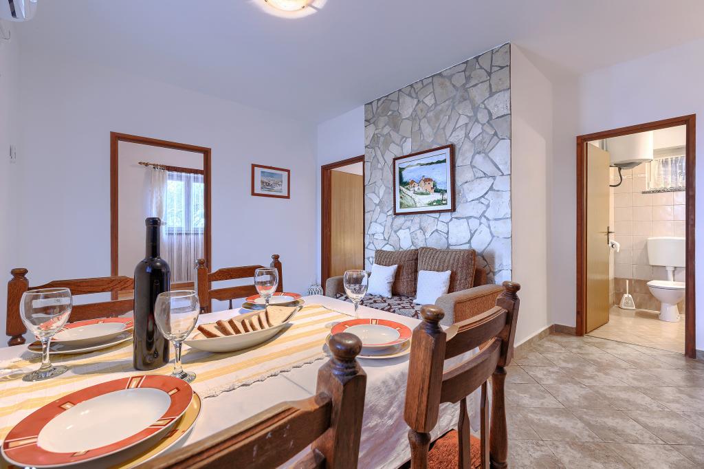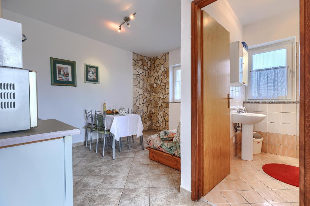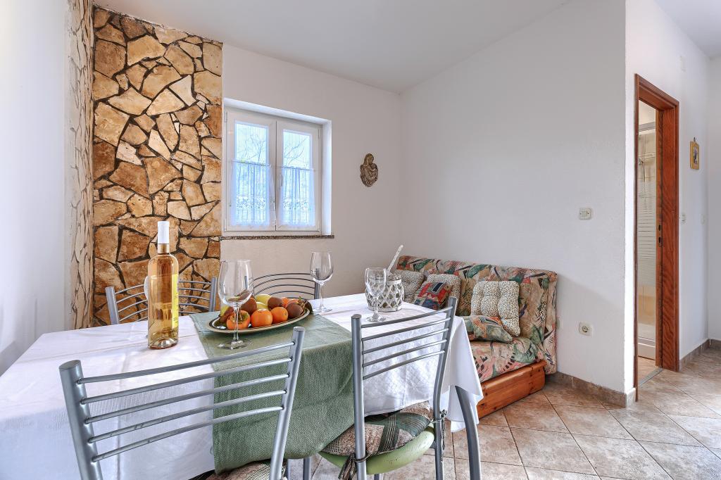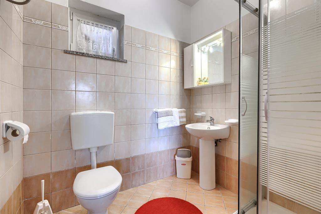 Maison avec plusieurs appartements dans le village de Drenje. Située à 5 minutes en voiture de la plage et à 15 minutes de Labin, elle propose des appartements de plain-pied offrant une intimité totale et un cadre idéal pour se détendre. Le premier appartement, d'une superficie de 42 m², comprend une chambre avec un lit double (possibilité d'ajouter un lit d'appoint), un séjour avec coin repas, une cuisine entièrement équipée, une terrasse avec vue sur la mer et une salle de bains. Le second appartement, d'une superficie de 56 m², dispose de deux chambres avec chacune un lit double, d'un séjour avec coin repas, d'une cuisine entièrement équipée, d'une terrasse avec vue sur la mer et d'une salle de bains. Le restaurant et le supermarché les plus proches sont à 5 minutes en voiture. Situés dans un environnement calme et paisible, ces appartements offrent tous les atouts pour des vacances parfaites !
