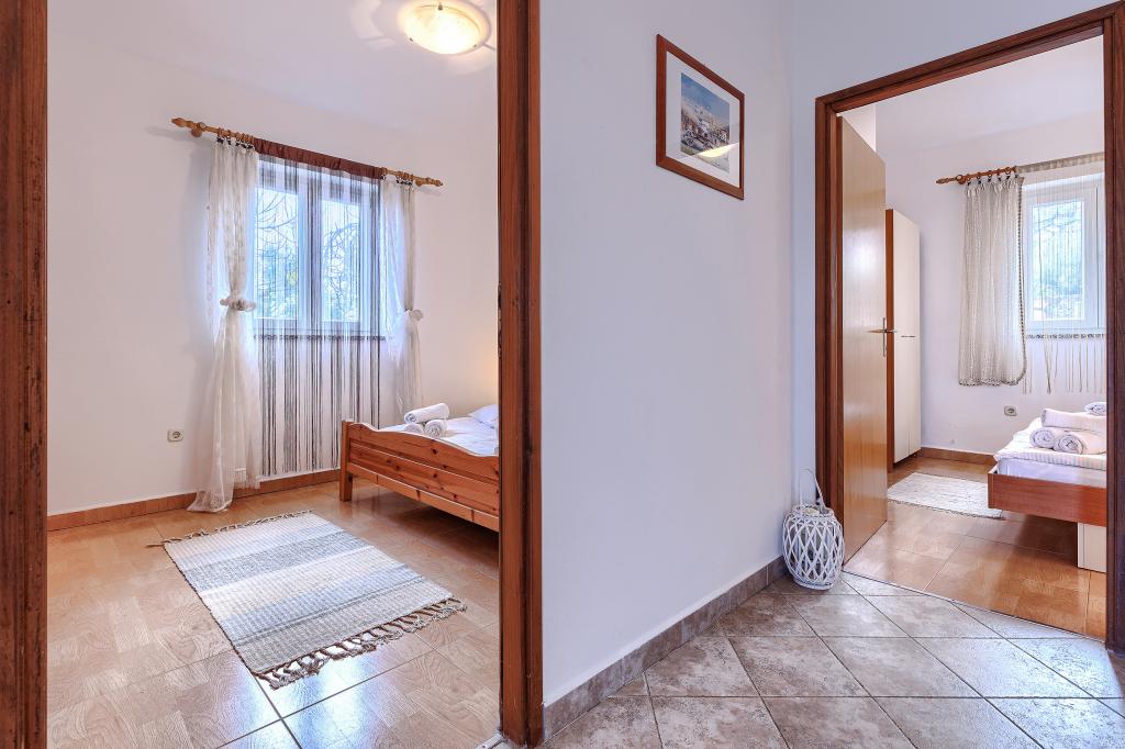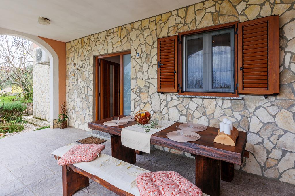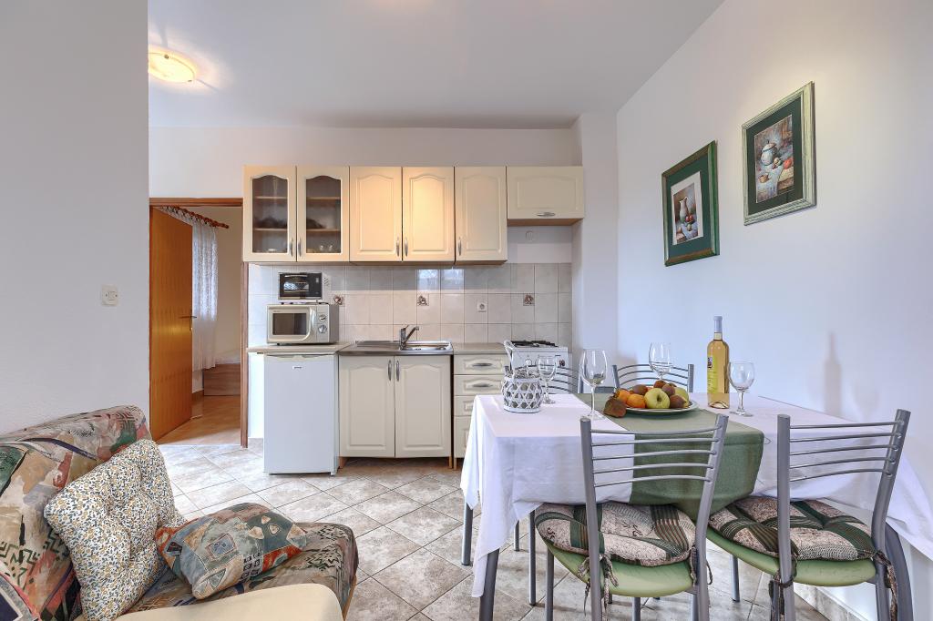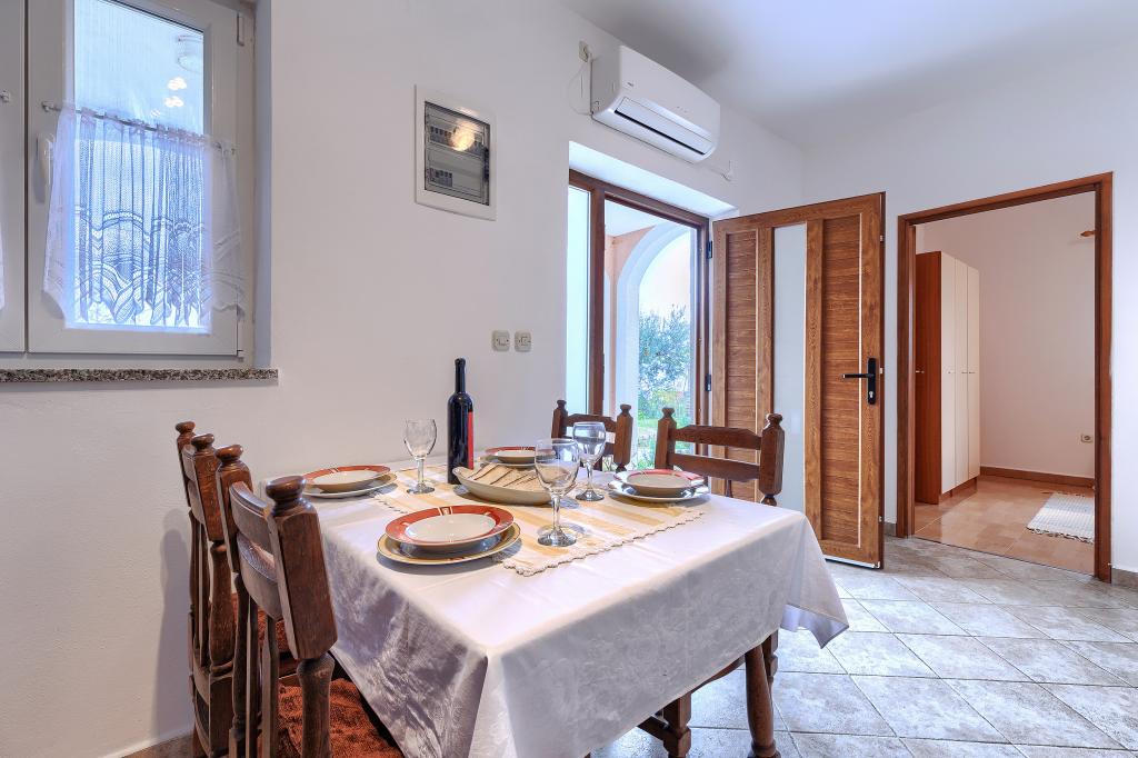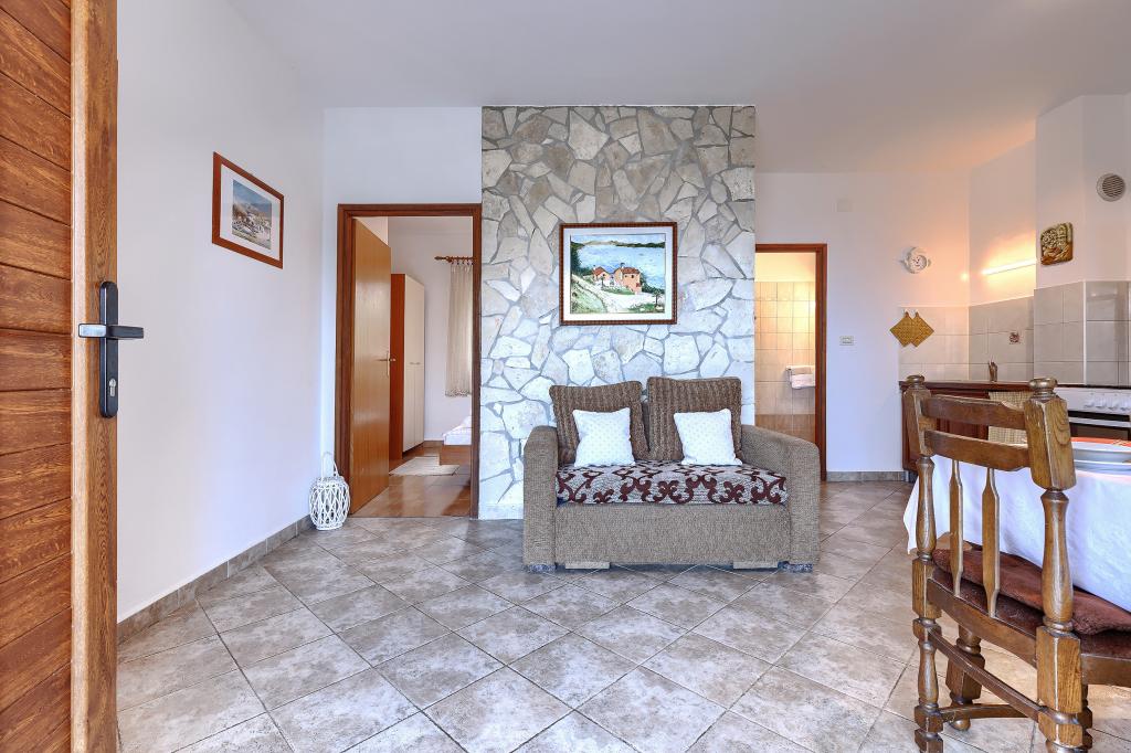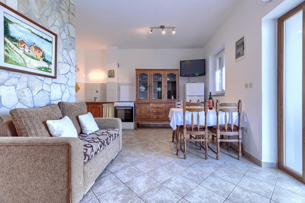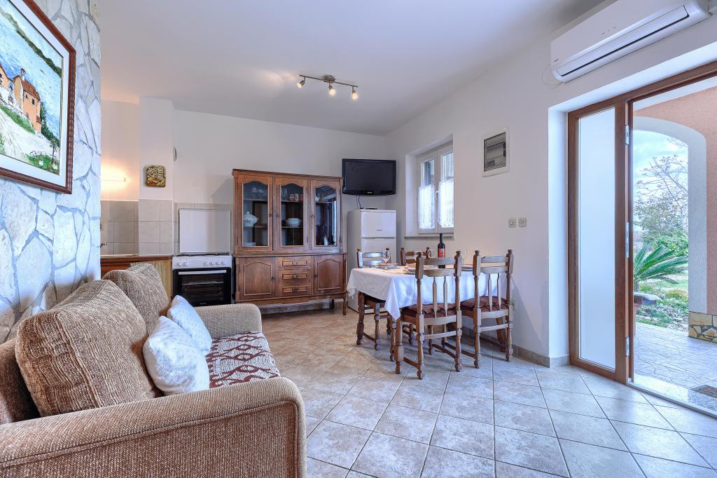 Maison avec plusieurs appartements dans le village de Drenje. Située à 5 minutes en voiture de la plage et à 15 minutes de Labin, elle propose des appartements de plain-pied offrant une intimité totale et un cadre idéal pour se détendre. Le premier appartement, d'une superficie de 42 m², comprend une chambre avec un lit double (possibilité d'ajouter un lit d'appoint), un séjour avec coin repas, une cuisine entièrement équipée, une terrasse avec vue sur la mer et une salle de bains. Le second appartement, d'une superficie de 56 m², dispose de deux chambres avec chacune un lit double, d'un séjour avec coin repas, d'une cuisine entièrement équipée, d'une terrasse avec vue sur la mer et d'une salle de bains. Le restaurant et le supermarché les plus proches sont à 5 minutes en voiture. Situés dans un environnement calme et paisible, ces appartements offrent tous les atouts pour des vacances parfaites !