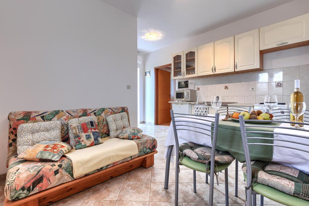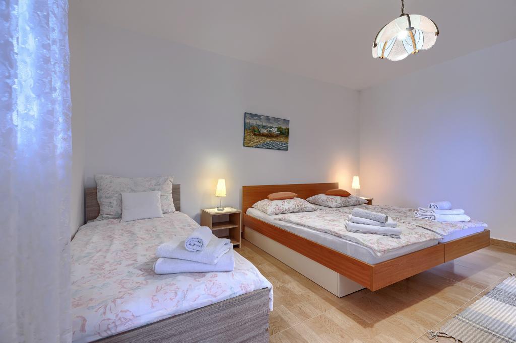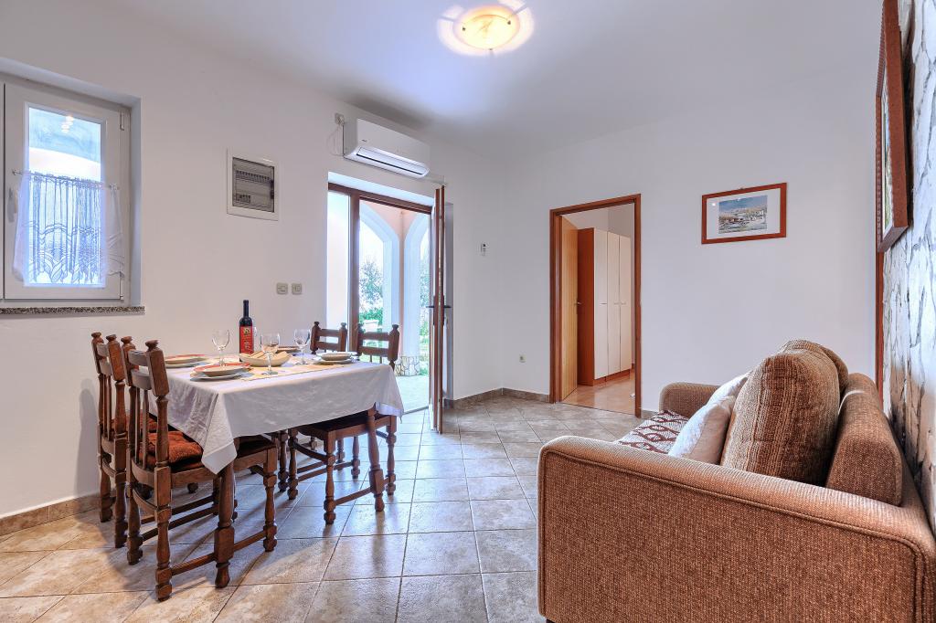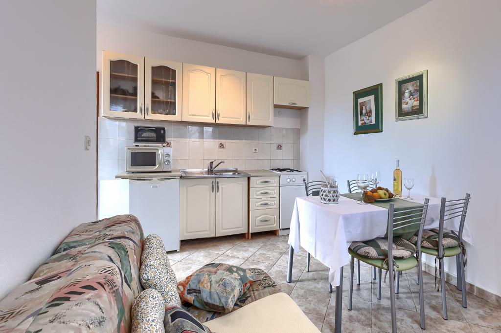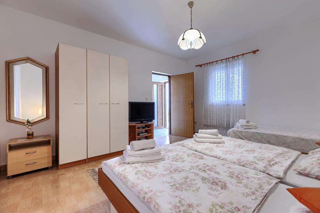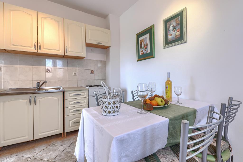 Maison avec plusieurs appartements dans le village de Drenje. Située à 5 minutes en voiture de la plage et à 15 minutes de Labin, elle propose des appartements de plain-pied offrant une intimité totale et un cadre idéal pour se détendre. Le premier appartement, d'une superficie de 42 m², comprend une chambre avec un lit double (possibilité d'ajouter un lit d'appoint), un séjour avec coin repas, une cuisine entièrement équipée, une terrasse avec vue sur la mer et une salle de bains. Le second appartement, d'une superficie de 56 m², dispose de deux chambres avec chacune un lit double, d'un séjour avec coin repas, d'une cuisine entièrement équipée, d'une terrasse avec vue sur la mer et d'une salle de bains. Le restaurant et le supermarché les plus proches sont à 5 minutes en voiture. Situés dans un environnement calme et paisible, ces appartements offrent tous les atouts pour des vacances parfaites !