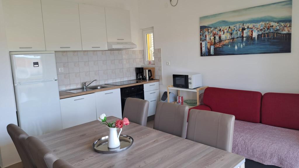 Nous avons séjourné fin juillet et début août. Les appartements étaient propres et bien entretenus, avec tout le nécessaire : serviettes, savon, produits d'entretien… La cuisine était très bien équipée. La propriété est proche de la mer, et les plages, peu profondes, sont idéales pour les enfants. Nous avons été très impressionnés par la charmante propriétaire, Biljana. Passionnée par son travail, elle accueille ses hôtes avec une grande gentillesse et une attention particulière, toujours souriante et prête à rendre service. Elle a été attentive au moindre détail, nous demandant chaque jour si nous avions besoin de quelque chose et nous apportant des jeux, des jeux de société et des puzzles pour nos enfants. Nous serions ravis de revenir dans ce lieu merveilleux. Je le recommande à tous ceux qui recherchent la tranquillité, de beaux paysages et une eau chaude. Iwona, Mariusz, Monia et Dawid