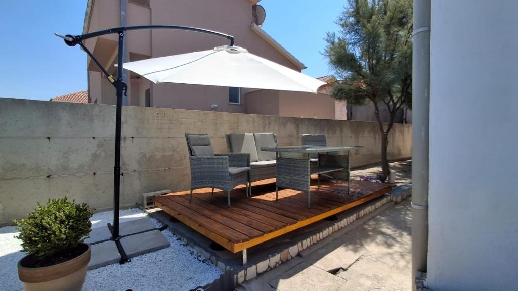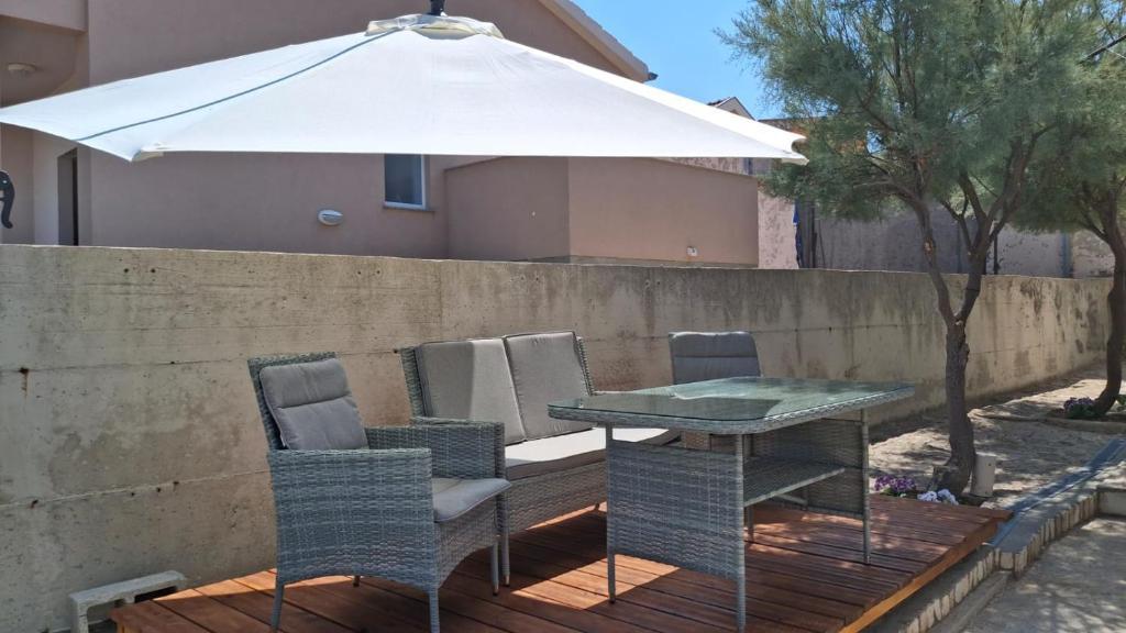 Nos hôtes disposent de deux appartements entièrement indépendants, d'un parking et d'un jardin privatif. Ce dernier est équipé d'un barbecue et d'une douche extérieure. L'appartement offre une vue imprenable sur la mer et le massif du Velebit, et la plage est à seulement 3 minutes à pied.