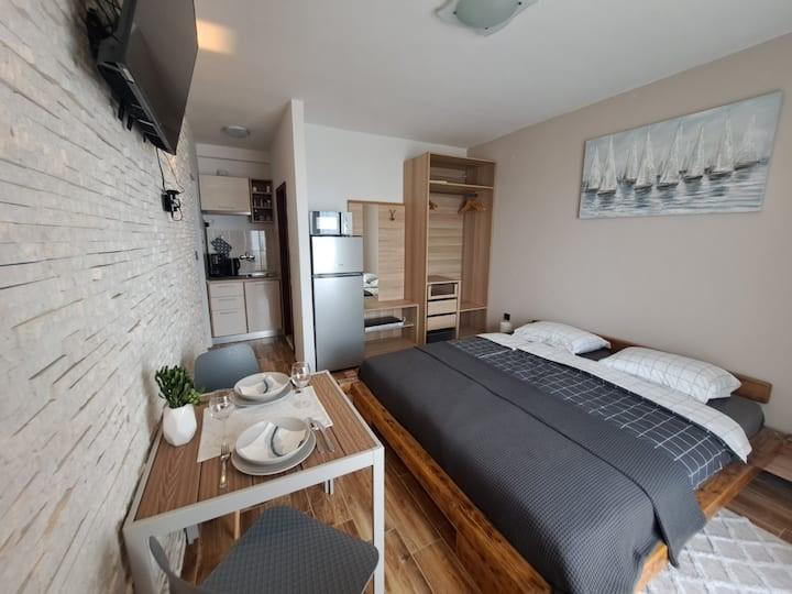 Appartements meublés, linge de lit et serviettes inclus dans le prix de la réservation. Parking gratuit à 50 m du logement. Barbecue à disposition.