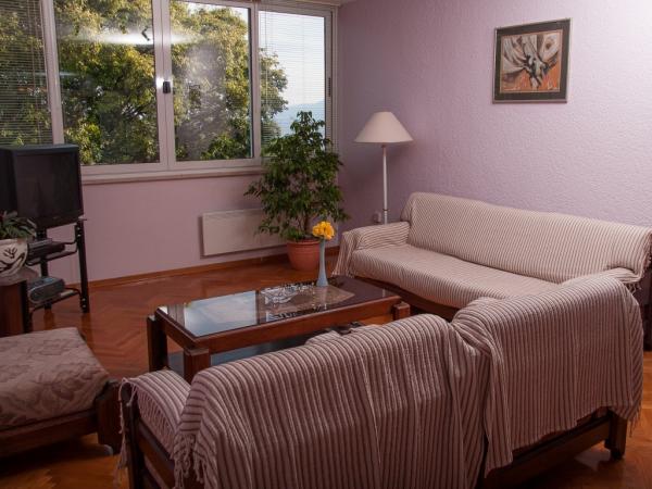 Veronika appartement est situé dans un quartier calme de la rivière, le bâtiment de deux étages avec un jardin paysagé et un parking privé. Depuis le centre-ville est à seulement 4 km de Opatija 6 km. En raison de son emplacement dispose d'excellentes liaisons avec Rijeka et Opatija. Les appartements ont une vue sur la mer. A proximité il ya: un nouveau centre sportif et de loisirs avec un complexe de piscines et d'une plage, courts de tennis, le nouveau centre d'athlétisme et du stade de football. L'appartement dispose de deux chambres, un salon spacieux, cuisine équipée, salle de bains et balcon. L'appartement est équipé avec: Lit-4-2 Basic lits supplémentaires, climatisation, radio et 2 TV, TV par satellite, internet, machine à laver avec sèche-linge, lave-vaisselle, sèche-cheveux, fer à repasser, congélateur, chauffage, parking