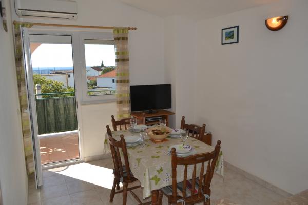 Appartements avec vue sur la mer Entièrement meublé, de la plage à 50 mètres du centre à 10 minutes. Chaque appartement est climatisé, avec la possibilité d'utiliser l'Internet. Chaque appartement dispose d'une salle de bains, une cuisine séparée avec une bouilloire et un four. L'appartement dispose de deux chambres, chaque chambre dispose d'un lit double. Une chambre ouvre sur une terrasse avec un balcon, tandis que l'autre a une grande fenêtre. L'appartement dispose d'une salle de séjour, salle à manger et un canapé-lit. Les appartements disposent d'une télévision par satellite. Chaque appartement dispose d'une terrasse avec table et chaises et un parasol. La maison dispose d'un espace de stationnement, et chaque appartement possède sa propre place de parking en face de la maison. En outre, l'usage des invités est offert et barbecue couvert.