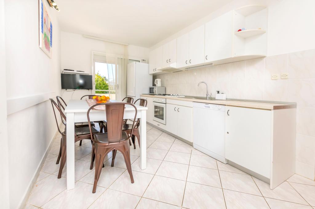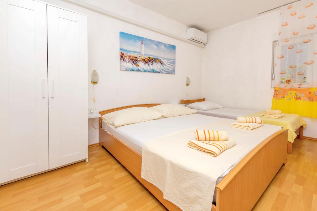 Appartements meublés classés 3 étoiles. Appartement A- 8 1, rez-de-chaussée, adapté aux personnes handicapées. poussette, grande terrasse, 3 climatiseurs, 2 wc, plage à 40 m, adapté aux enfants, grand jardin, barbecue, douche extérieure, parking protégé du soleil. Belle promenade en bord de mer, de l'appartement au centre (environ 2000m). . Animaux sur rendez-vous. Pour nos touristes, nous exploitons un transfert aéroport Split - Rogoznica. Pistes cyclables aménagées, environ 100 km. Calme, calme, douceur du climat, soleil, promenade en bord de mer, repos du corps et de l'esprit. Chers amis, nous sommes la mer chaude la plus proche, bienvenue ! Appartement A9, 1 étage, grand balcon, belle vue mer, 2 petits balcons, 3 climatisations, 3 WC, grill, parking. Bienvenue chez nous !