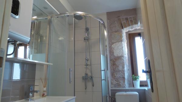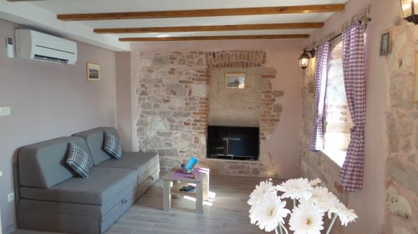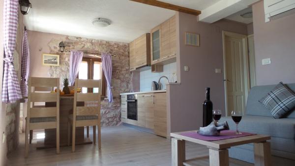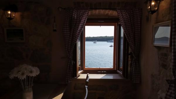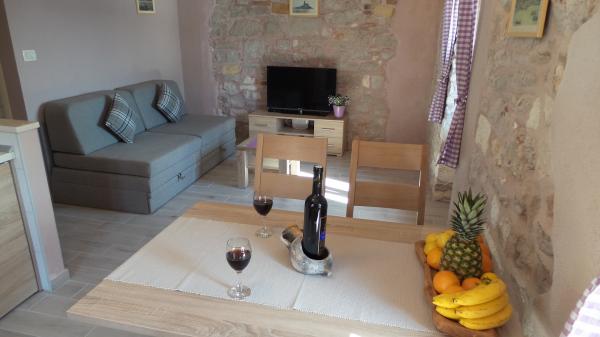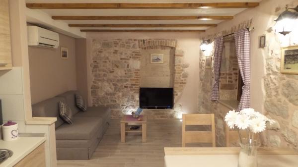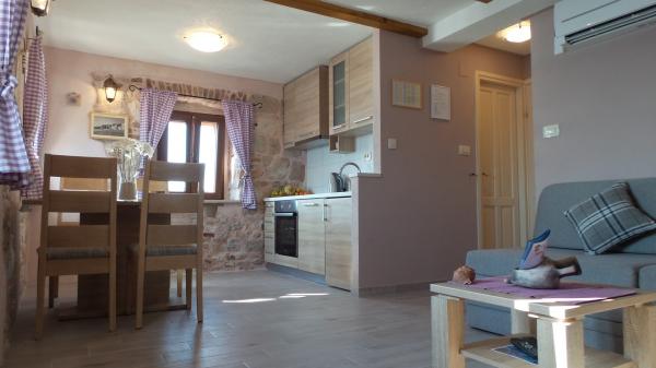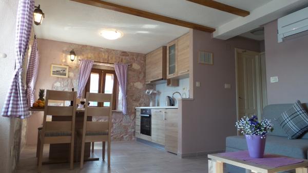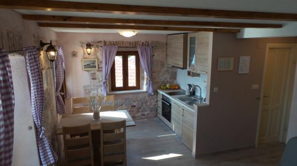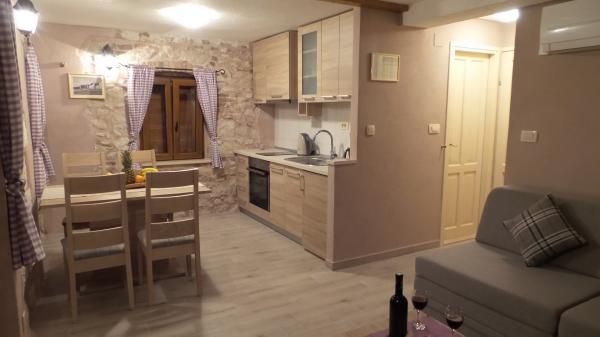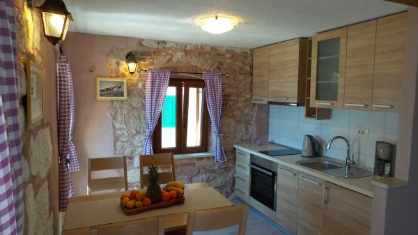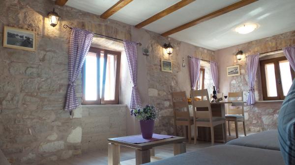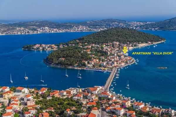 Dalmatie est connue pour ses vieilles maisons de pierre, donc si vous avez toujours voulu rester et sentir l'atmosphère qu'il offre ce est la bonne occasion pour vous. Villa Dvor est une occasion unique de vacances dans une maison traditionnelle dalmate en pierre construite il ya de nombreuses années. La maison est entièrement rénové 2014, et contient trois appartements identiques disposées sur trois étages avec une entrée par un escalier interne. Chaque appartement dispose d'une vue imprenable sur la mer, qui ne est qu'à une dizaine de mètres. La maison est située dans le centre de Rogoznica, sur le front de mer, à côté de la mer. Toutes les commodités essentielles sont à portée de main: un restaurant, un café et commerces sont situés à 50 mètres ... Bienvenue!