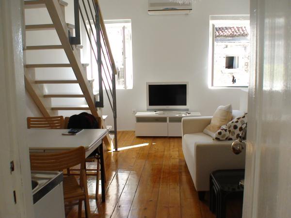 L'appartement lumineux et spacieux au troisième étage d'un immeuble au cœur de la vieille ville, surplombant la mer, à deux minutes du front de mer, restaurants et cafés, à 5 minutes de la plage de la ville ou prendre un bateau pour l'île Rouge, et de Catherine. Avec une petite cuisine et salon est confortable chambre pour deux et la galerie où les lits pour deux personnes.