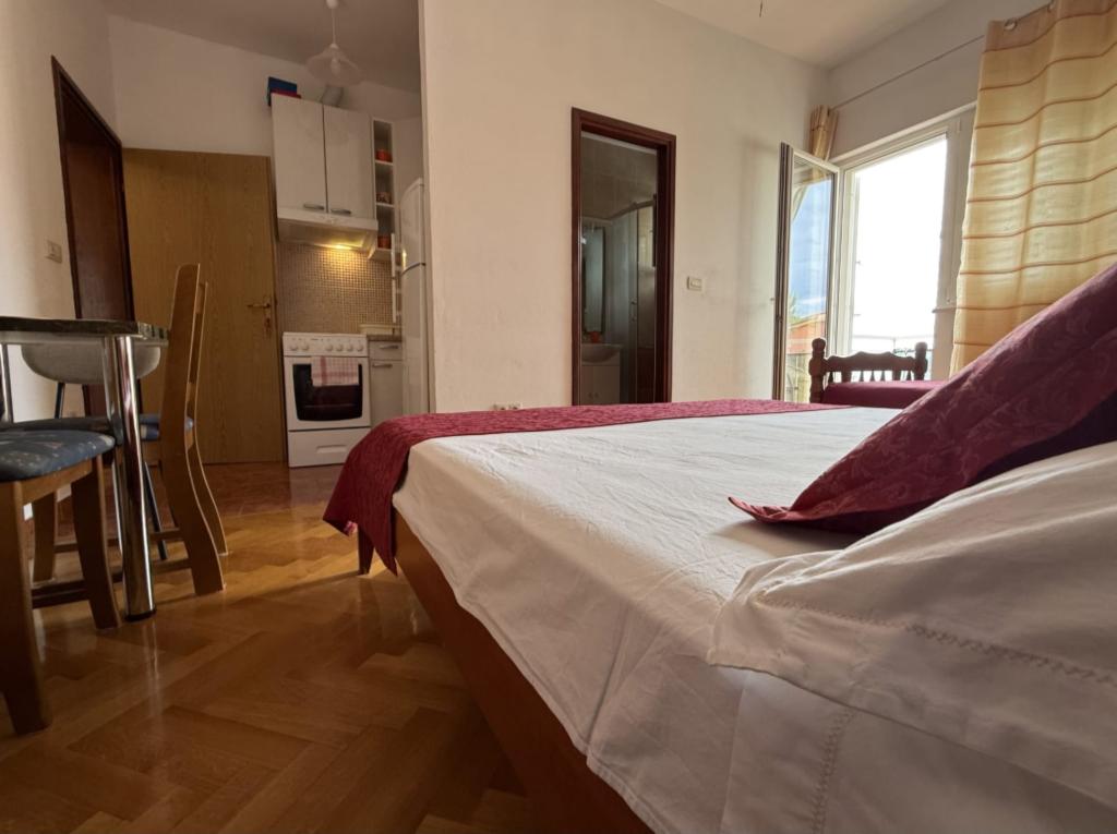 Appartement très soigné, belle vue, et des hôtes très accueillants! Ce qui est représenté dans l'image est tellement réel. La plage est propre, sans surpeuplement, idéale pour la relaxation du corps et de l'âme. C'est aussi l'endroit idéal pour un jeu de bébé sans soucis. L'appartement est en dessous de la route principale, ce qui empêche le bruit de la voiture de tomber. Tous les NAJ, NAJ ... .