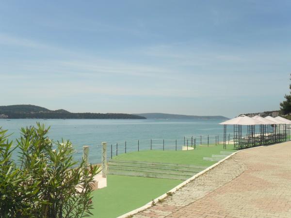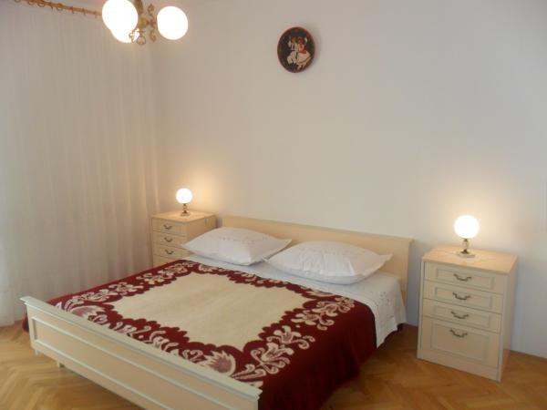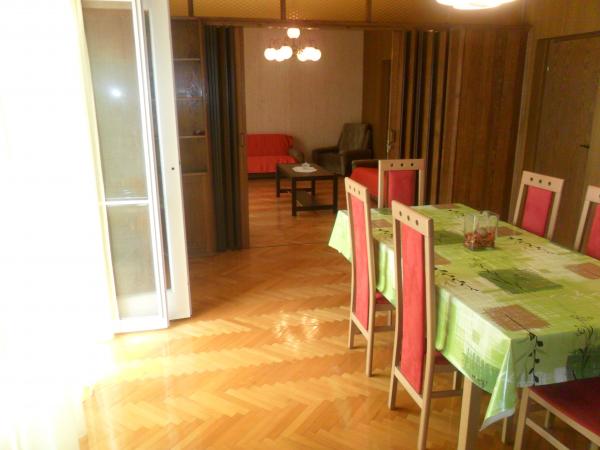 Juste au nord de Trogir est Seget, connue pour ses belles plages. Ces plages sont très belles et bien rangé, et le gravier est petite, en fait idéal. Ils offrent des chaises longues et des parasols à louer. Il y a aussi une sélection solide de restaurants. Ils offrent des excursions organisées avec des bateaux et de nombreuses attractions liées à la mer. installations nues et sportives à proximité des appartements (tennis, basket-ball, football, mini-golf, piste de jogging, etc.). Appartement Filip est situé dans le village de pêcheurs Seget Donji près de Trogir. L'appartement dispose de trois chambres à coucher, salon avec deux lits supplémentaires, salle à manger, cuisine, deux salles de bains, de grands balcons, terrasses, barbecue, accès Internet gratuit, cafetière, grille-pain, fer et planche à repasser, chariot d'été enfant, parking. L'appartement est idéal pour deux familles ou groupes de personnes. Distance de la plage est à seulement 60 mètres. Chacun de nos clients a un cadeau de bienvenue. Bienvenue!