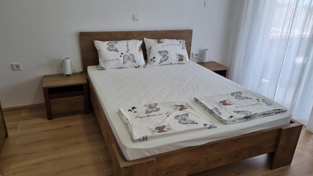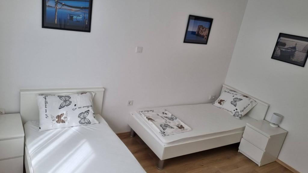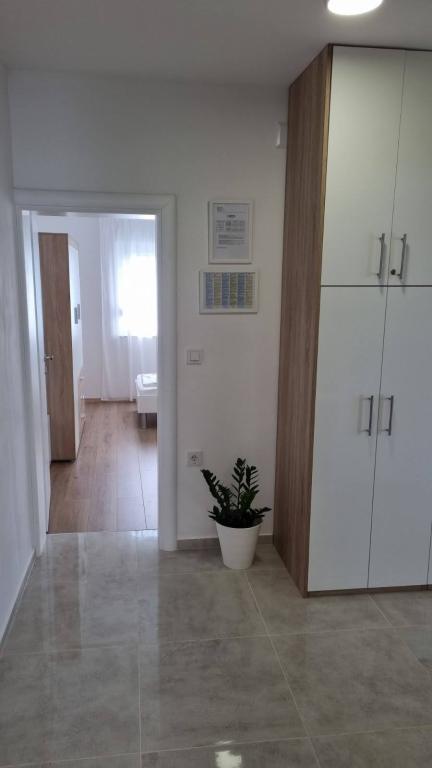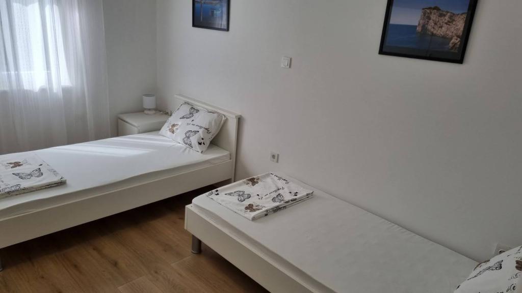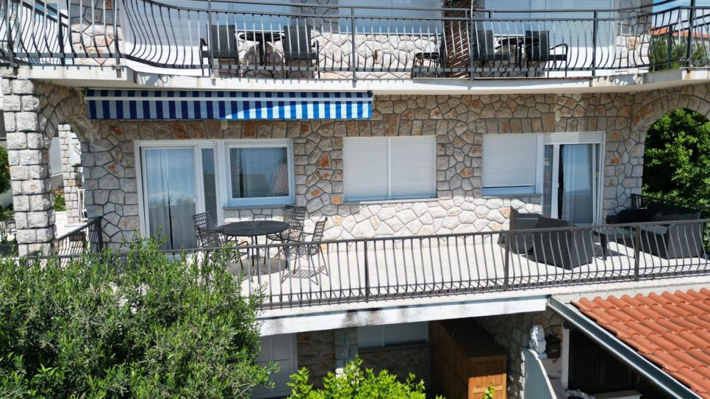 Je loue un appartement de deux chambres avec une grande terrasse et vue sur la mer. L'appartement est situé dans une rue calme, à 200 mètres de la mer, de la plage et du centre de Selce.