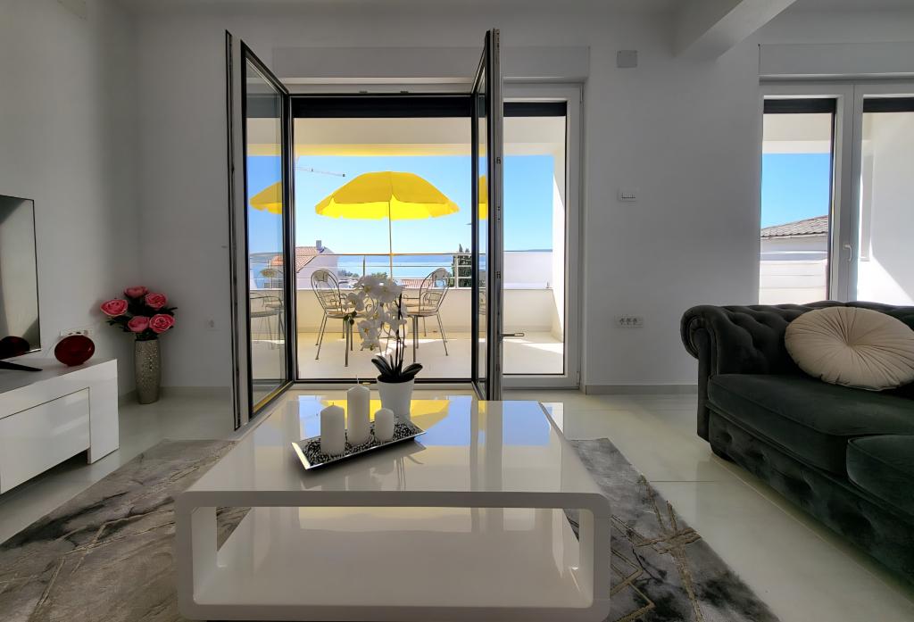 Situés au centre de Selce, petite ville pittoresque de la côte adriatique, à proximité de Crikvenica, ces nouveaux appartements sont situés au rez-de-chaussée surélevé et au premier étage. Ils sont spacieux et aérés. Chaque appartement comprend deux chambres, une salle de bains, un couloir, une cuisine ouverte, une salle à manger, un salon et un balcon. Ils offrent une vue magnifique sur la mer et la plage. Ils sont situés à 2 minutes à pied du centre-ville, des commerces, de la promenade, de la plage, des restaurants et des cafés. Le parking se trouve dans la cour de la maison. La climatisation, le Wi-Fi et le parking sont inclus dans le prix de l'hébergement. Le prix comprend la taxe de séjour et le ménage. Les animaux ne sont pas admis.
