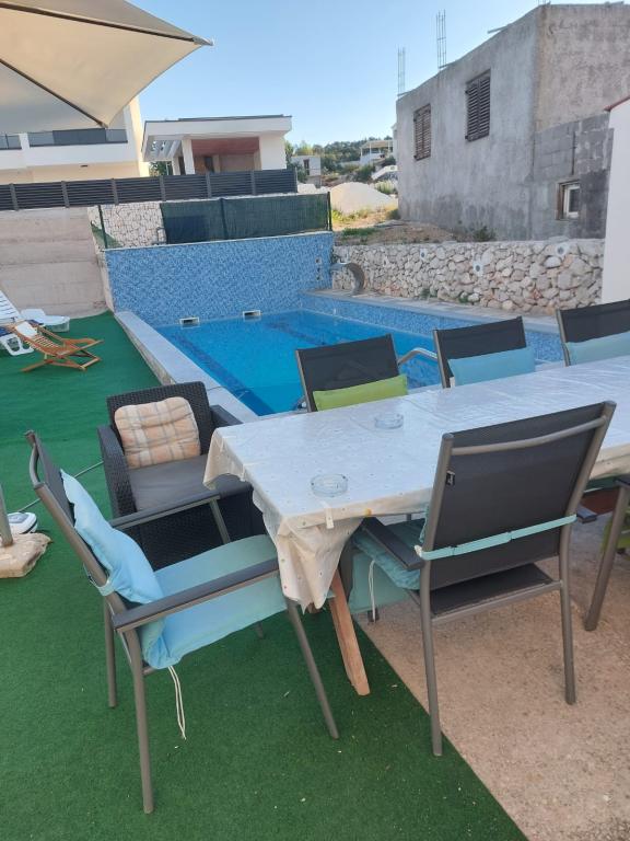 Quartier calme et tranquille. Chaises longues, parasols, kayaks disponibles sur la plage et tout cela pour le prix. Dans le jardin une piscine et un coin barbecue. Parking. A4 chambres spacieuses avec un grand balcon (nous avons passé la première semaine là-bas), A2 + 2 (deuxième semaine de séjour) un peu plus petites, des chambres propres. Propriétaires gentils, amicaux, serviables. Belle famille 2 + 2 (enfants de 7 et 11 ans). Pour le magasin et le bar 2 min. (seulement magasin et bar dans le village.À la plage maximum 1 minute.L'eau dans cet endroit très propre. Je recommande l'appartement Dinko à tout le monde.