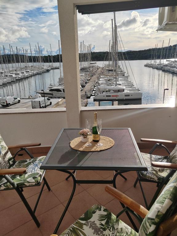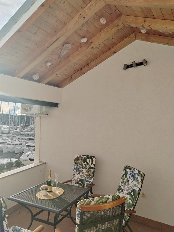 La maison se situe sur la presqu'île de Mandalina à Šibenik et offre une vue sur la mer (port de plaisance). Elle comprend deux chambres, deux salles de bains, un salon, une salle à manger avec cuisine ouverte et une terrasse avec douche extérieure. Le centre-ville et un supermarché sont à 5 minutes en voiture, et la première plage à 10 minutes.