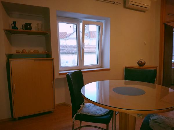 Equipé appartement dans le centre de Skradin L'installation se compose d'un hall, cuisine, salon, salle de bains et la chambre. Il est à 100 mètres de la plage, non loin du port de plaisance, ainsi que le parc national de Krka.