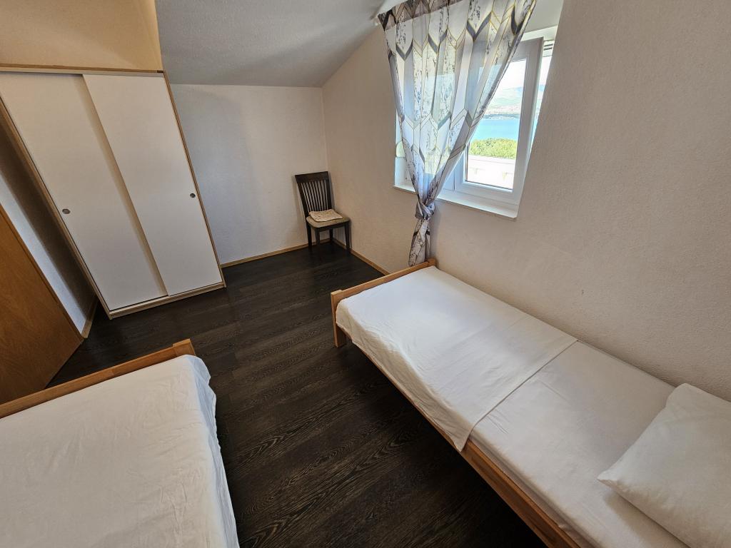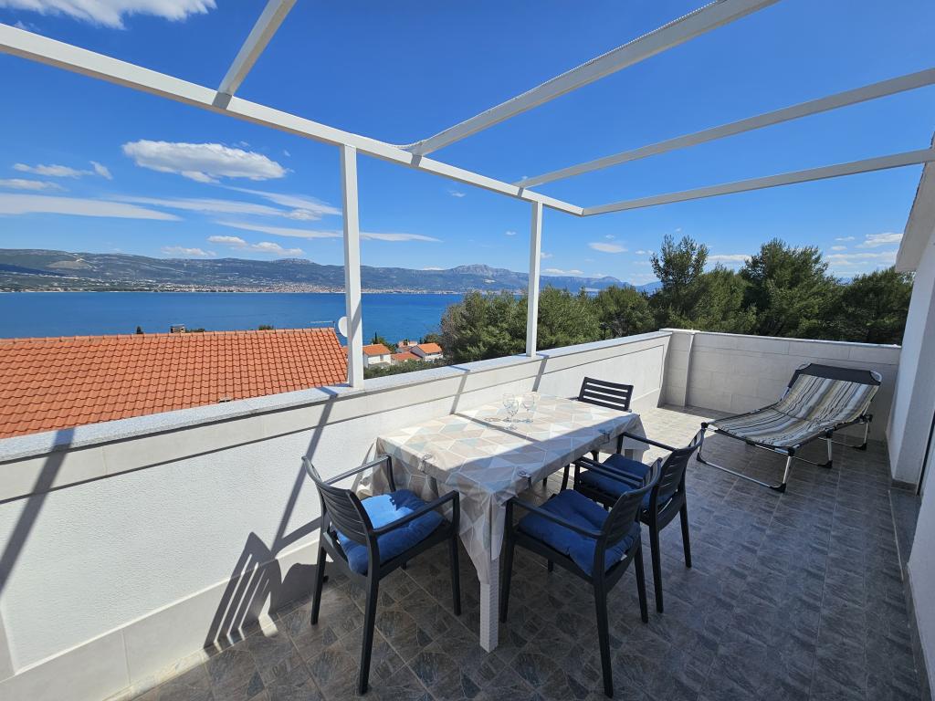 Nous sommes une famille de 2 adultes et 3 enfants (âgés de 7, 10 et 11 ans) et nous avons eu un bon séjour dans cet appartement! L'appartement a une belle vue sur la mer, à quelques minutes de marche de la mer, la plage est peu fréquentée et a un peu d'ombre, l'appartement était propre en très bien entretenu, calme, très sympathiques propriétaires. L'accès à l'île prend du temps en raison des ponts que vous avez à passer. Nous avons visité Split (par bateau, former départ Slatina), Trogir (garer votre voiture avant les ponts et marcher à Trogir, il est pas loin à pied), fait un pique-nique de poissons de Trogir (bateau Mistica) et nous avons visité les environs de l'église près Slatine (Les beaux alentours). Près de l'appartement est un supermarché et de restaurants.