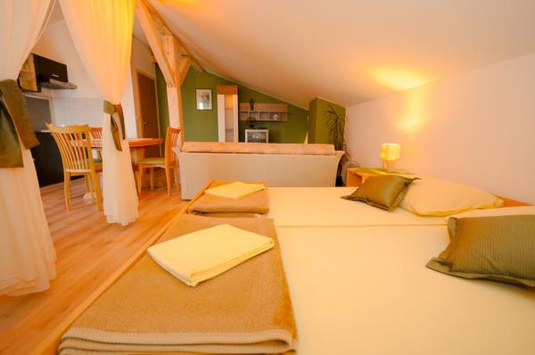 Modernes studios meublés sont situés sur le site atraktovnom donnant sur le célèbre village de moulin lui-même qui a 5 minutes à pied de la plage sur la rivière Korana 7 minutes à pieds du centre en 15 minutes.