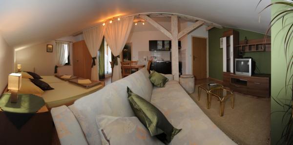Taxe de sejour est inclus dans le prix.Avec hébergement, nous offrons la possibilité de visiter la galerie et acheter des peintures, qui se trouve au rez-de-chaussée, la possibilité d'acheter de la confiture de produits locaux, Djem, chutney, jus, alcool, grillades en plein air et des tables avec des bancs donnant sur la Rastoke.