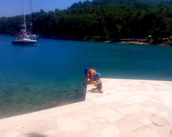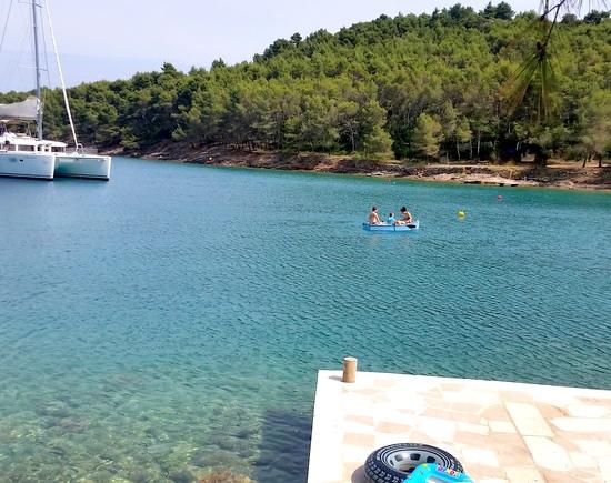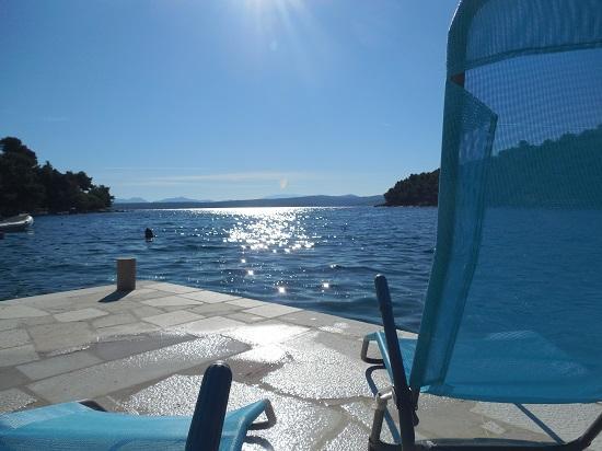 La plupart vont adorer la grande terrasse lumineuse et ensoleillée surplombant la mer. Chaises de plage colorées vous invitent au soleil, et une douche extérieure d'été promet un petit rafraîchissement. Cependant, le meilleur rafraîchissement vous trouverez cristal mer bleue turquoise et très beau! Détendez-vous et détendez-vous dans l'appartement limetta sur la côte, avec vue sur les collines verdoyantes et la toute petite baie fascinante. Un grand nombre de bateaux, voiliers et arrivées du soir ajoute un charme unique à cet endroit.