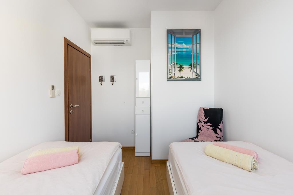Ce magnifique appartement de deux chambres, situé en plein centre de Split, offre 70 m², une terrasse, une baignoire balnéo et la climatisation dans toutes les pièces. La mer se trouve à 50 m. Ce logement unique est idéalement situé à proximité de tous les points d'intérêt, facilitant ainsi l'organisation de votre séjour. Le centre-ville et le palais de Dioclétien sont accessibles en 5 minutes à pied. Vous bénéficiez d'une place de parking privée dans le garage, avec un accès direct à l'appartement par ascenseur. L'appartement est situé au 3ème étage d'un immeuble récent. Supermarché : 300 m, restaurants : 100 m, café : 50 m, excursions en bateau : 500 m, port de ferry : 200 m, gare routière : 200 m. Les clés de l'appartement et du garage se trouvent dans le coffre-fort à clés au rez-de-chaussée de l'immeuble. Le code d'accès vous sera envoyé par e-mail après votre réservation.