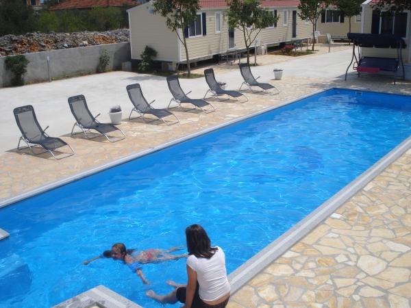 OFFRE DE DERNIERE MINUTE MOIS DE JUIN! MAISONS DU JOUR 40 LOCATION €. LE PRIX COMPREND L'UTILISATION DE LA PISCINE ET CLIMATISATION. Le complexe récemment rénové de cinq maisons mobiles SHELBOX avec deux chambres (une avec un lit double et une avec trois lits, dont un lit superposé), salle de bains, salon et cuisine et terrasse devant les maisons mobiles avec des tables et des chaises. Le prix comprend l'utilisation de la piscine et la zone de mise en page de 50 m2 avec des chaises longues et un avec de l'herbe artificielle pour se reposer et jouer pour les enfants, la climatisation et les serviettes et les draps. Supplément taxe de séjour est de 1 € par personne pour plus de 18 ans, pour les personnes de 12 à 18 ans est 0. 5 € et moins de 12 ans est libre de taxe de séjour de charge. Distance à proximité des plages avec drapeau bleu est 3-5 minutes à pied (environ 200 mètres). En outre, du centre-ville, nous sommes situés à 4 kilomètres de Sibenik 10 kilomètres. Nous sommes en mesure d'offrir aux clients et un service de petit déjeuner à un coût de 7 € par personne, dîner à un coût de 8 € ou demi-pension pour 15 €. mob de contact. 0917525178