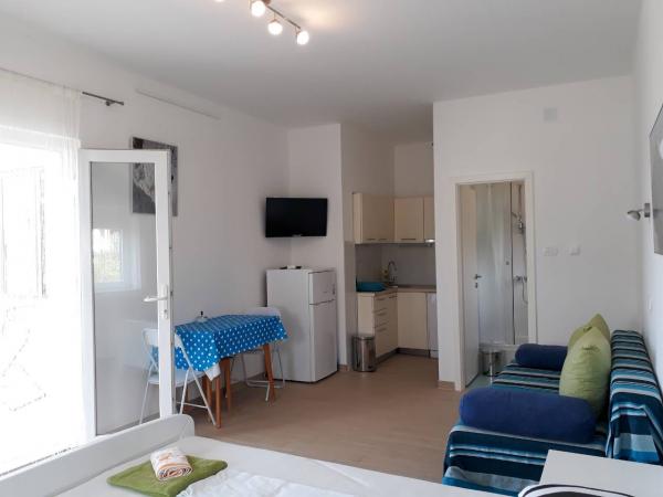 Appartements Kanjon, Starigrad-Paklenica Starigrad Paklenica, parc national de Paklenica, à 30 minutes de Zadar. Studio de 35m2 situé au premier étage d'une maison familiale à Starigrad Paklenica. Vue sur la mer et la montagne, à 500m de la plage, environ 1000m du centre de la ville. Entièrement équipé: wifi, climatisation, lave-vaisselle, bouilloire électrique, grand réfrigérateur avec congélateur, télévision Internet, canapé-lit double. . Barbecue dans la cour, place de parking dans la cour de l'immeuble.