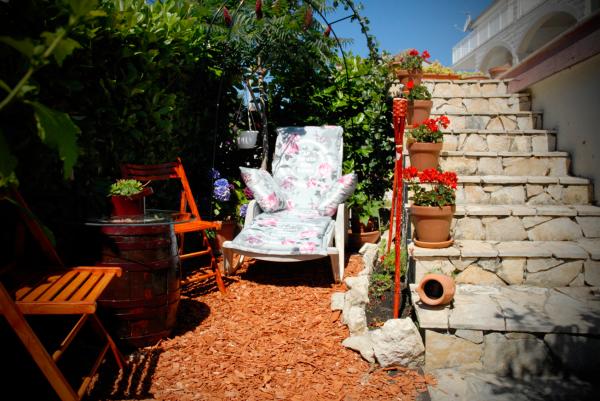 Cette Maison Chick est de 60 m2 et peut accueillir 5 Personnes maximum. Il a 2 CHAMBRES (1 Lit Double et 2 Lits Simples avec des Draps), CUISINE ENTIEREMENT EQUIPEE AVEC UN BAR (Plats pour servir des Aliments et des Boissons, Couverts, Ustensiles, Lave Vaisselle, Four, Réfrigérateur, Congélateur, Micro-Ondes, Bouilloire, Machine à Café, Grille-Pain), 2 SALLES DE BAINS (Lave-Linge, Douche, Serviettes, Sèche-Cheveux), SALON (Canapé-Lit, Table et Chaises, TV, Accès Internet sans Fil Gratuit, Climatisation), TERRASSE AVEC VUE SUR LA MER (Table et Chaises), JARDIN BELLE PLEIN DE FLEURS (3 Chaises Longues, Balançoire et Barbecue), Place de Parking Gratuit. House est situé moins de 3 min à Pied de la Plage de Roche et à 5 min à Pied de la Plage de Sable, moins de 1 min à Pied du Parc Magnifique avec une Surface de Jeu, 2 min à Pied du Quartier plein de Restaurants et de Bars Traditionnels qui offrent le Poisson Frais, Fruits et Légumes Bio,Vins Bons, Huile dOlive et des Pâtisse.